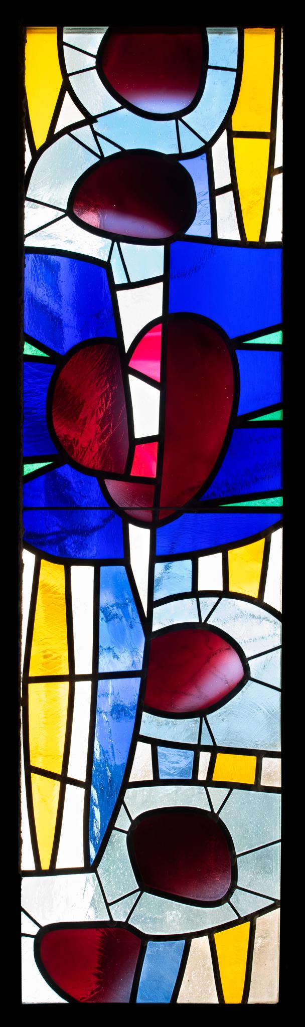 Farbloses und farbiges Glas. Unterschiedlich breite Bleiruten.