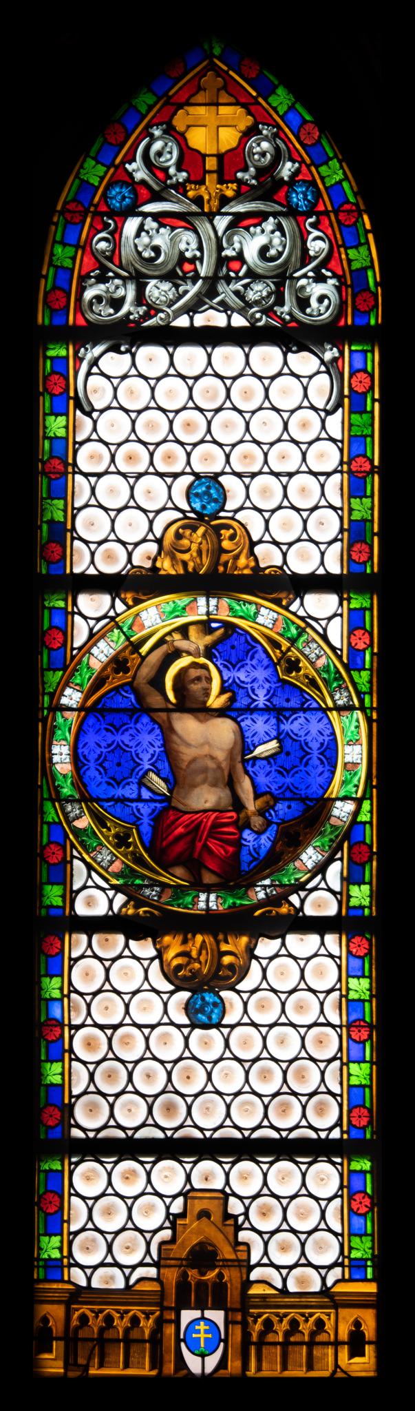 1881 lieferte Eduard Hecht aus Ravensburg im Auftrag des Pfarrers Joseph Hausheer sechs “gemalte Kirchenfenster” für die katholische Kirche in Hagenwil (Katholisches Kirchgemeindearchiv Hagenwil, B 13.4.05/3, Protokollbuch 1867-1899 und B 17.2.16/0). Es handelte sich dabei um zwei Figurenfenster (je 320 Fr.) und zwei Teppichfenster (je 200 Fr.) für den Chor, sowie um zwei Fenster mit Medaillons des heiligen Sebastian und der heiligen Katharina (je 260 Fr.), die im Schiff beim Marien- und dem Benediktaltar eingesetzt werden sollten.