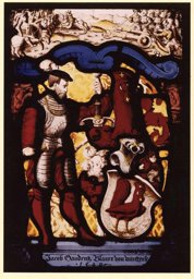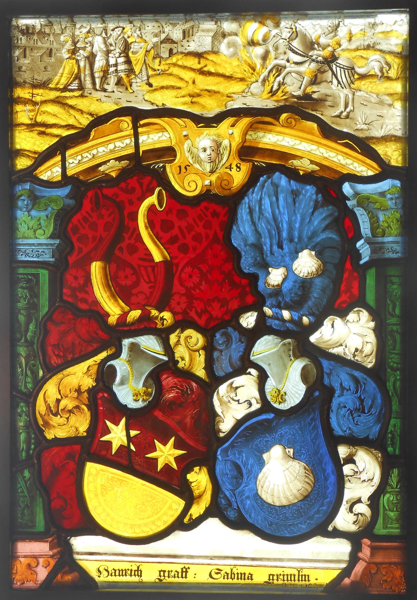 Le vitrail de Londres peut en effet être comparé à des oeuvres attribuées à ce dernier, à l’instar du vitrail héraldique aux armes de Joachim von Watt, daté de 1548 et conservé au château Altenklingen à Wigoltingen (TG – cf. Hasler et Keller 2020, TG_174, consulté le 7 mai 2021), où l’on retrouve le même type de mise en page, le fond damassé ou encore la manière de réaliser les mascarons ou encore le millésime.