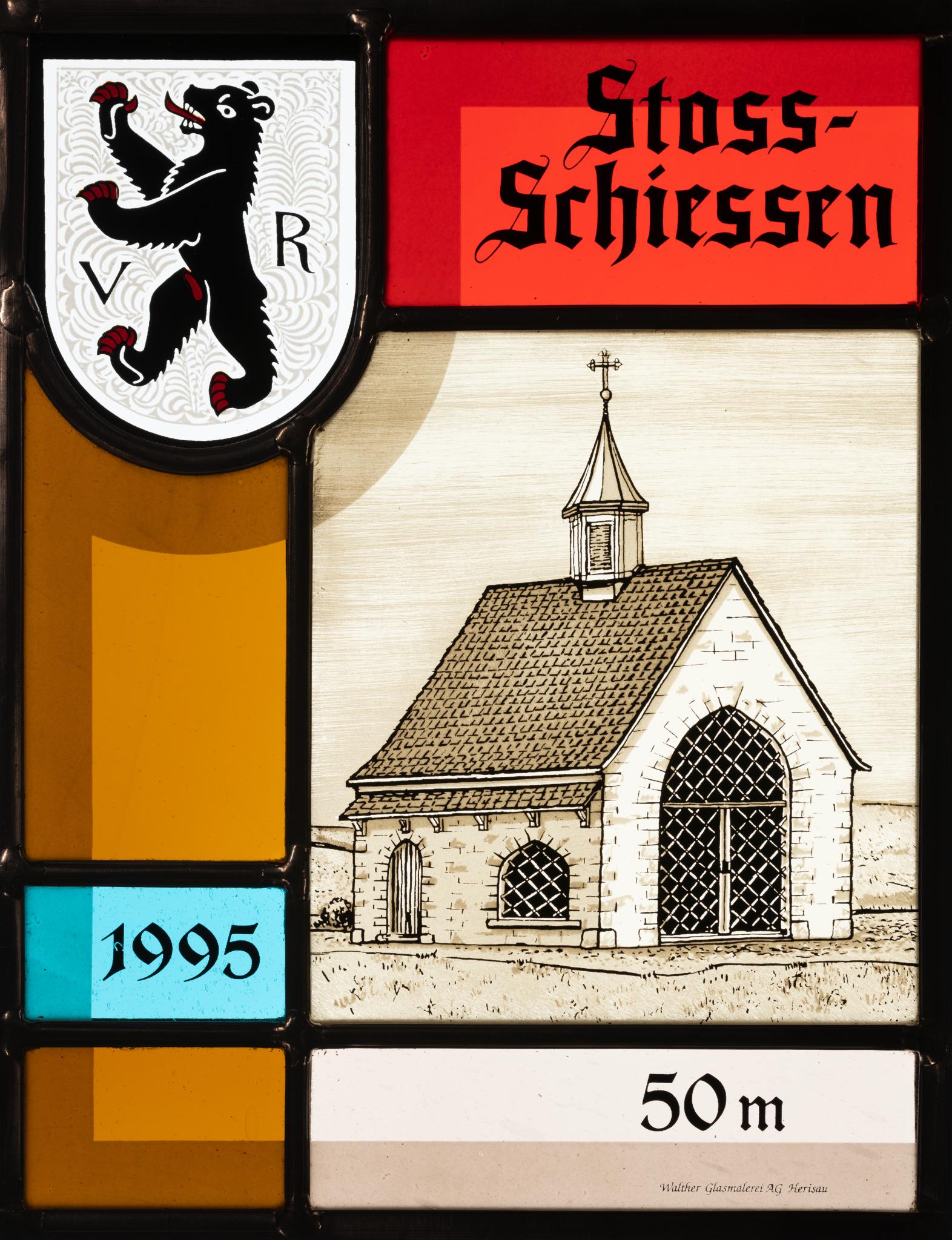 Die Wappenscheibe erhielt der Thurgauer Kantonalschützenverein aufgrund seiner Teilnahme am Schiessen in Stoss (AR) im Jahr 1995.