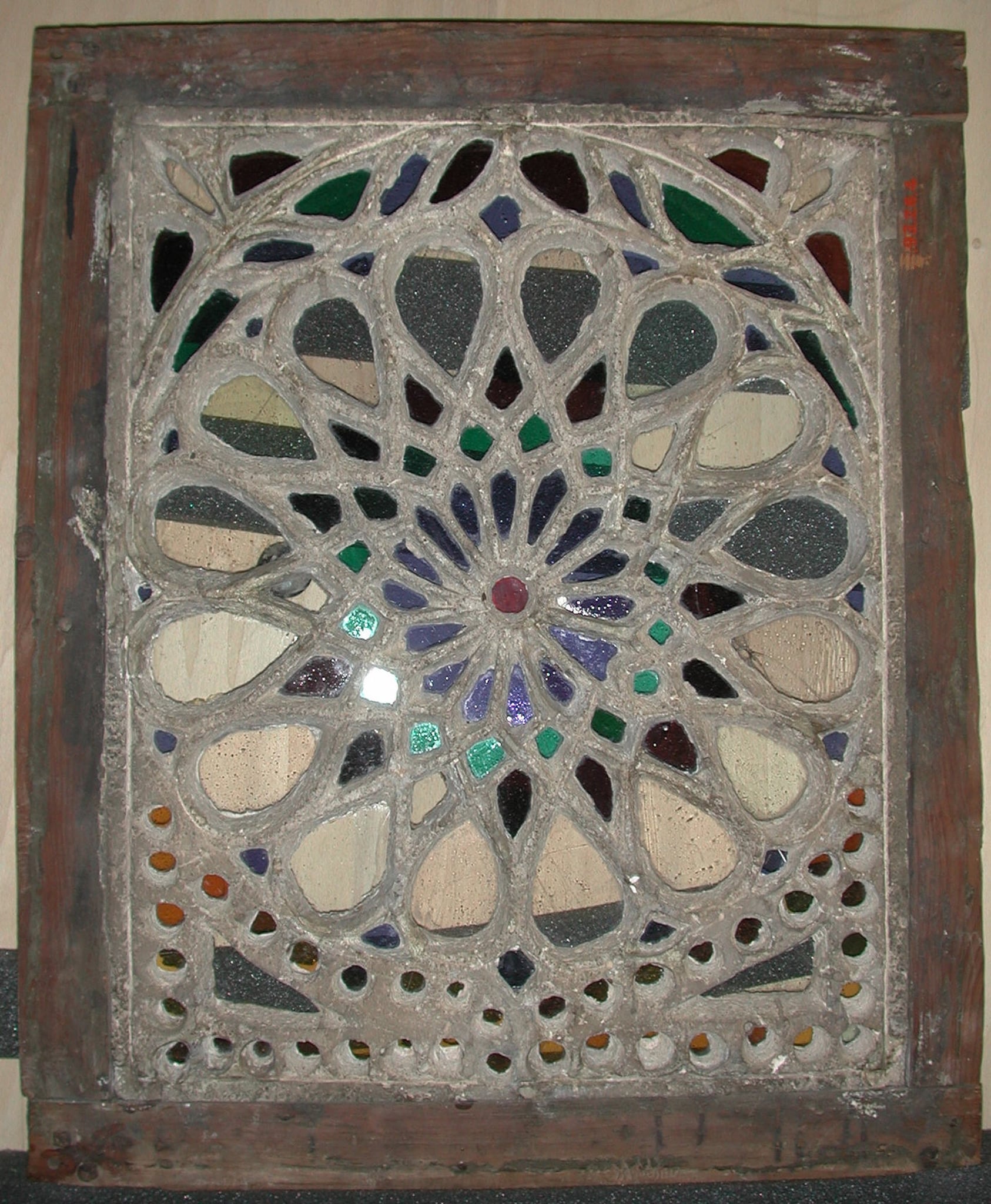 This stucco and glass window was produced according to the traditional method used in the manufacture of qamariyyāt in North Africa to this day (see Technique) and represents a motif that was widespread in Egypt during the Ottoman period.