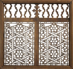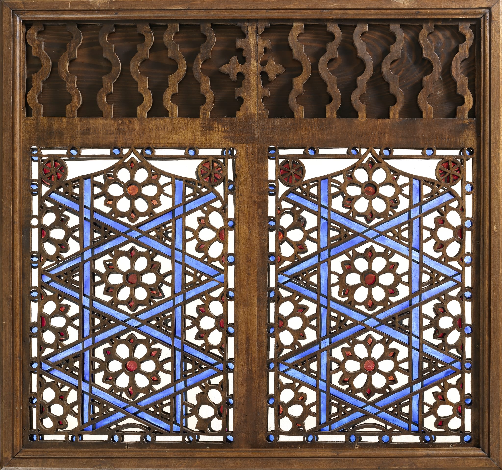 The design of the two panels of this replica differs significantly from Islamic stucco and glass windows, despite the symmetrical arrangement of the individual elements (circles, flowers, interlacing). The most significant difference however, when comparison is made with examples from the Ottoman Empire, is the use of wood instead of stucco for the latticework. A similar material transfer from stucco to wood can be observed in the windows designed by the British architect William Burges (1827–1881) for the Arab Room of Cardiff Castle in Wales (IG_484IG_487). Like these windows, the replica discussed here, as well as four similar replicas in the Wien Museum collection, was executed in a local (Austrian) workshop.