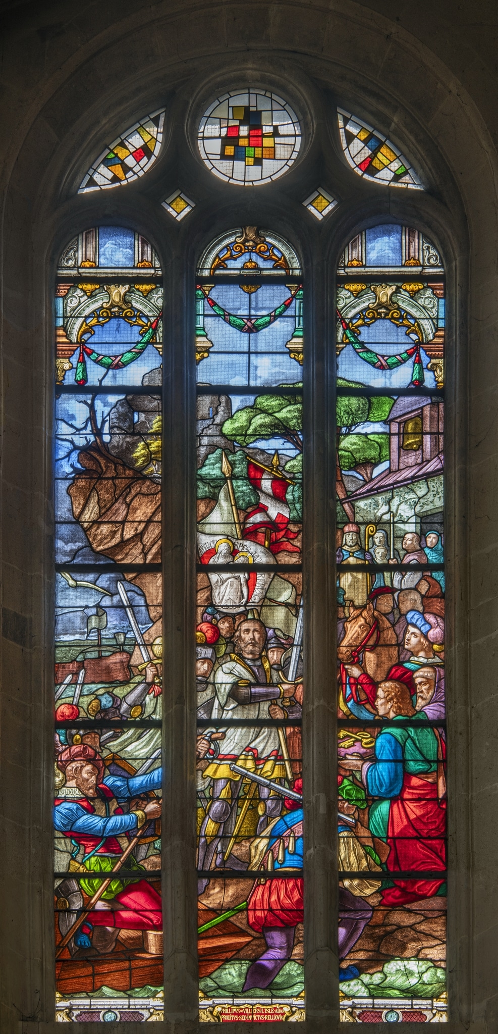 Philippe de Villiers de L’Isle-Adam, der die Insel Rhodos während sechs Monaten gegen die Belagerung durch Sultan Süleyman I. (reg. 1520–1566) verteidigte, hat möglicherweise zur Finanzierung der Kirche Saint-Martin in L’Isle-Adam beigetragen. Sein Bruder Antoine de Villiers war zur Zeit des Kirchenbaus Grundherr von L’Isle-Adam (1471–1504), während ein weiterer Bruder, Louis de Villiers (Bischof von Beauvais ab 1488), die Kirche 1499 erstmals weihte. Philippe de Villiers de L’Isle-Adam ist in der Glasmalerei mit einer Marien-Standarte mit dem Motto «Du bist die einzige Hoffnung in aller Bedrängnis» dargestellt, einem Symbol für die marianische Spiritualität des Johanniterordens. Obwohl die Johanniter auf Rhodos durch die Truppen von Sultan Süleyman I. besiegt wurden, durfte der Orden seine wertvollsten Reliquien mitnehmen, darunter die Ikone der Muttergottes von Philermos.