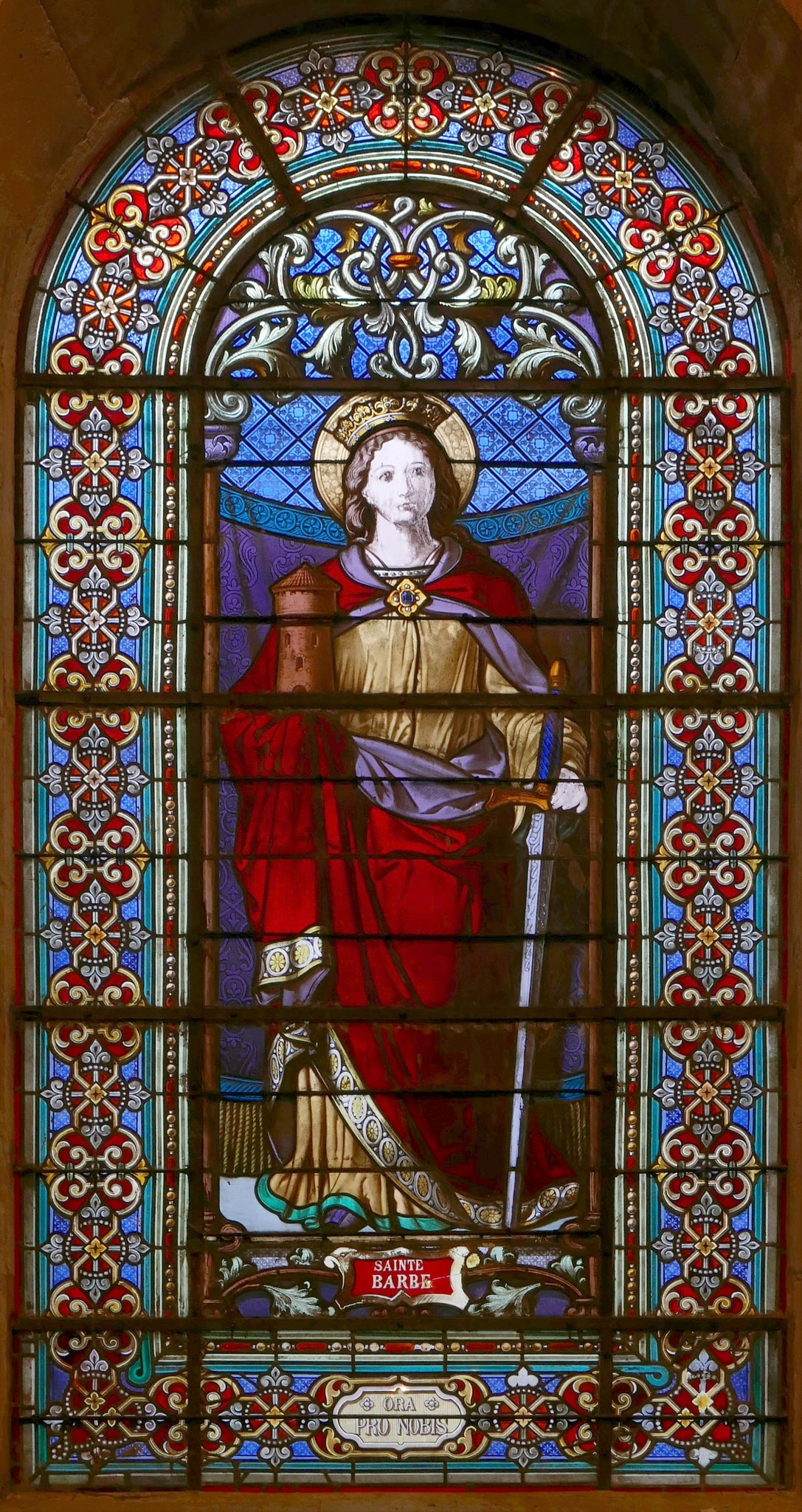 Das Barbara-Fenster ist eine von 14 Glasmalereien mit Heiligenfiguren aus dem Pariser Glasmalerei-Atelier Laurent, Gsell et Cie. (später Gsell-Laurent), die 1863 in Chor und Schiff der Kirche Notre-Dame de l’Assomption in Saint-Dizier eingesetzt wurden. Damals engagierte sich der Pfarrer Pierre Marie Didelot (1803–1873) stark für die Ausstattung der Kirche. Bürger und Bürgerinnen sowie verschiedene Vereinigungen und Zünfte von Saint-Dizier stifteten die Glasmalereien. Sie zeigen Vorbilder des christlichen Lebens und Schutzpatrone und weisen mehrere Bezüge zur örtlichen Eisenindustrie auf. Im Chor und auf der Nordseite des Schiffs sind männliche Heilige gezeigt, auf der Südseite des Schiffs weibliche Heilige. Die sechs Fenster im westlichen Teil des Schiffs sind kleiner als die vier Fenster im östlichen Teil des Schiffs und im Chor. Alle Fenster sind nach dem gleichen Prinzip gestaltet, lassen sich aber aufgrund unterschiedlicher Ornamentrahmen in drei Gruppen gliedern. Insgesamt kosteten die Glasmalereien 15’000 Francs. Die Glasmalerei der heiligen Barbara von Nikomedien, Schutzpatronin der Bergleute und Hüttenarbeiter, stiftete die Kirchenverwaltung von Saint-Dizier (Didier, 1897, S. 179).