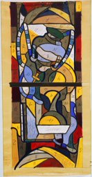 Partie inférieure d’un vitrail géométrique avec bordure (recto). Partie centrale d’un vitrail géométrique (verso)