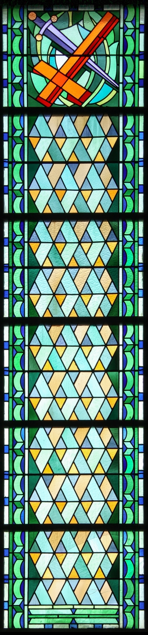 GSL_301: Vitrail géométrique avec les symboles de saints Pierre et Paul
