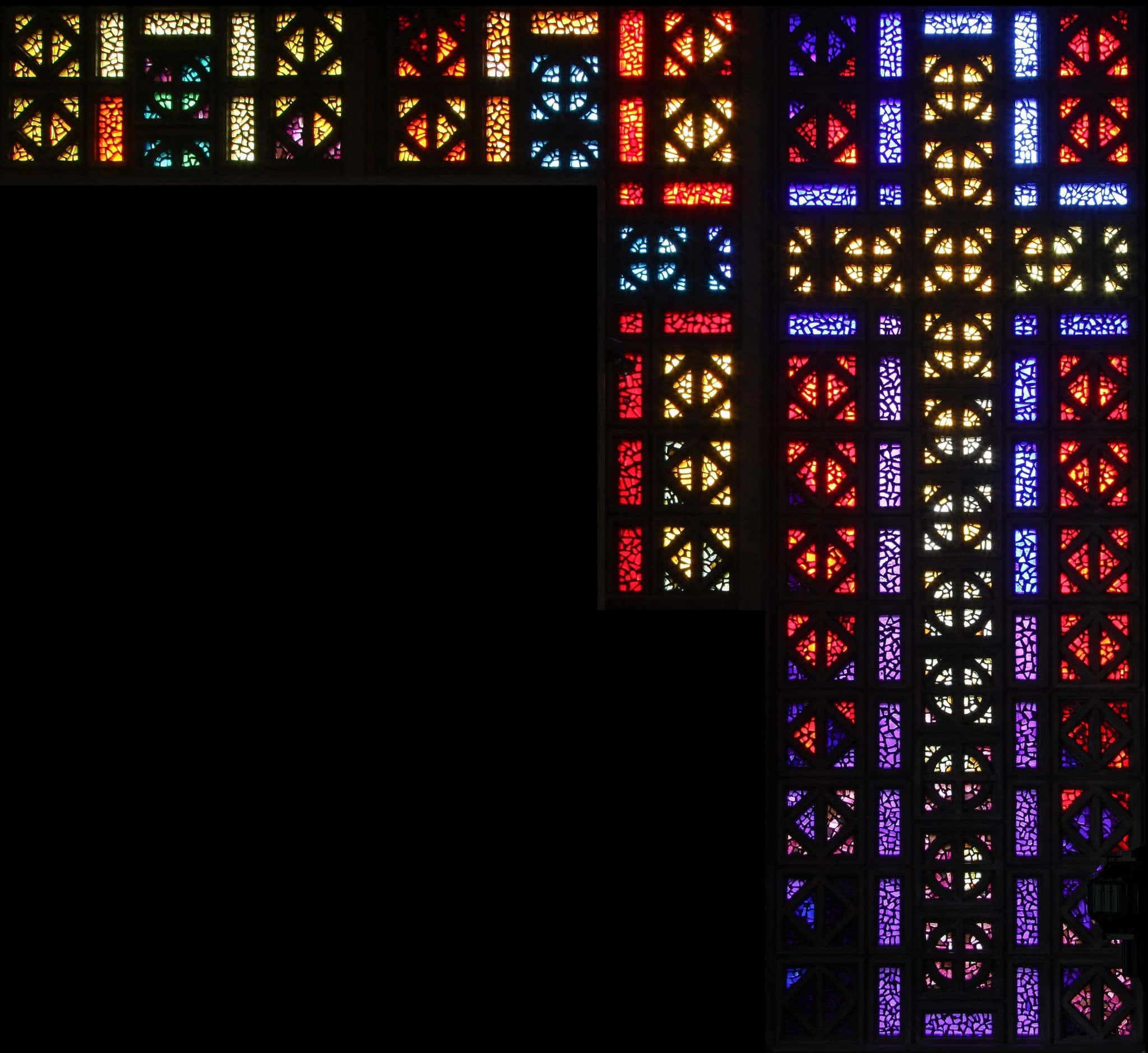 Ces parois en dalle de verre ont été réalisées par Alexandre Cingria entre 1942 et 1944 dans le choeur et la nef de la chapelle du Christ-Roi de l’Université Miséricorde de Fribourg.