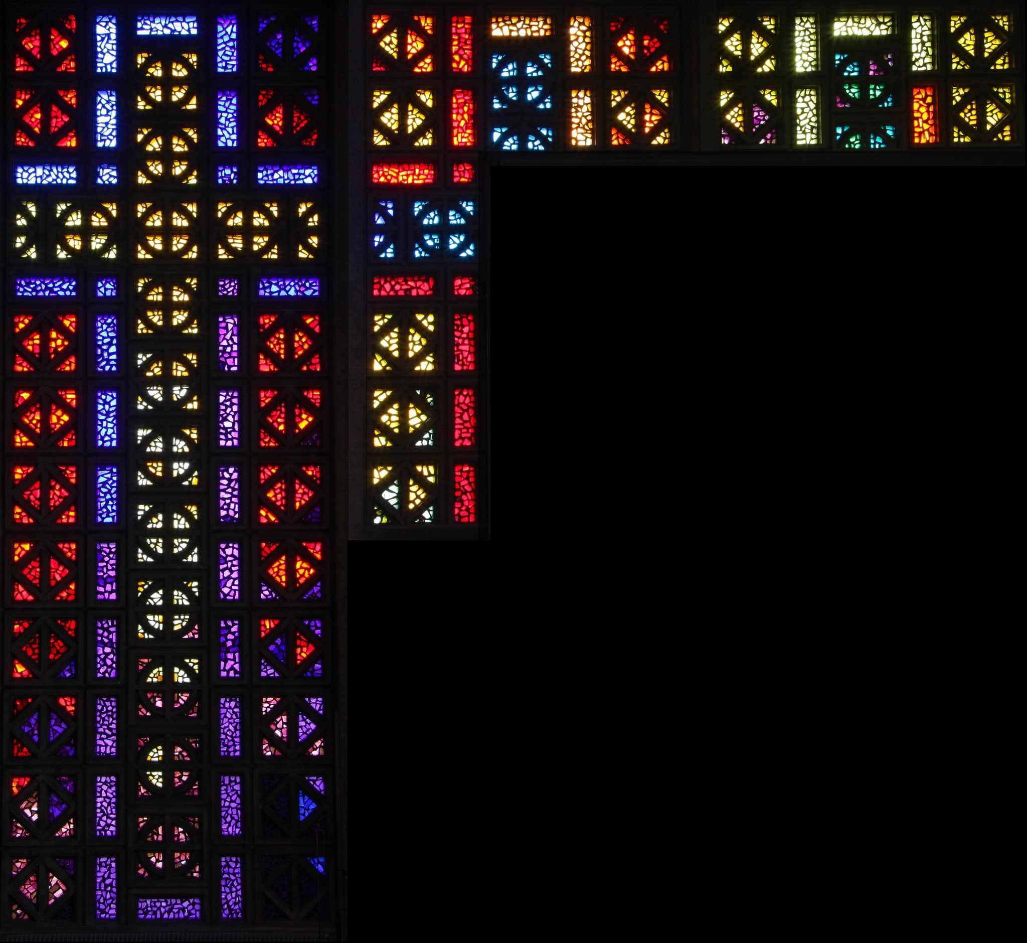 Ces parois en dalle de verre ont été réalisées par Alexandre Cingria entre 1942 et 1944 dans le choeur et la nef de la chapelle du Christ-Roi de l’Université Miséricorde de Fribourg.