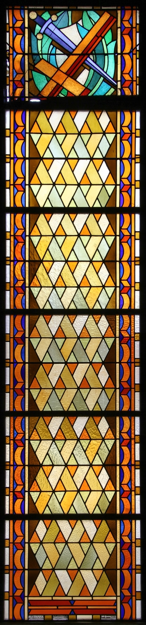 GSL_636: Vitrail géométrique avec les symboles de saints Pierre et Paul