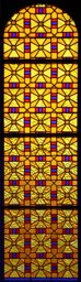 Pour les trois vitraux figurés du choeur, Cingria a travaillé avec l’atelier Kirsch & Fleckner, maison qui fournit également les vitraux des deux fenêtres latérales ornementales du choeur et des chapelles, dont ce carton a été le modèle (Sudan, [Ecoffey], 1936 ; Dumas, 1939). Il est probable que Cingria, peut-être en concertation avec l’artiste Paul Landry, en charge des décors peints et de la polychromie, ait donné des directives concernant les coloris, le choix des verres et la composition de ces vitraux afin d’assurer leur cohérence avec l’ensemble du programme décoratif.