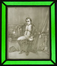 Le deuxième au-dessus figure Napoléon assis dans un intérieur, le corps avachi. C’est une copie d’un tableau de Paul Delaroche, Napoléon Ier à Fontainebleau le 31 mars 1814.