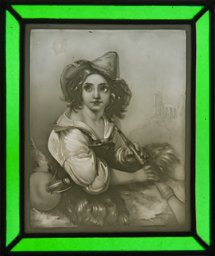 Le troisième en bas à gauche présente un garçon, coiffé d’un chapeau et portant une gourde, assis sur une peau de mouton et jouant du hautbois devant un arrière-plan paysagé.