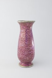 Ce modèle de vase (146) fut créé à une période précoce de la Verrerie artistique (1930-1964). Les sources dont nous disposons sont des catalogues de la Verrerie de St-Prex, certains inédits, tels que les albums noirs munis de photographies de vases, vraisemblablement utilisés par les représentants de 1931 à 1935, où ce modèle est proposé comme no 140 et 57: H 23, 43 cm et H 34 cm (Verreries de St-Prex, 1931). Il fait également partie de l’offre du premier catalogue de vente imprimé en 1935 (Verreries de St-Prex, 1935, no 146, 2, 13 et 14), où ce vase est décliné en verre vert, émaillé rouge brillant et en doré craquelé. Il figure ensuite dans un répertoire non publié, qui, basé sur les numéros d’inventaire des catalogues de 1935 à 1960, dresse la liste de tous les modèles de la production artistique (Verreries de St-Prex, 1964, H 22, 27, 32 et 43 cm). Dès 1951, le grand format (43 cm) n’est plus produit (Verreries de St-Prex, 1951). D’après les sources, ce modèle a été ainsi élaboré dès 1931 et produit jusqu’en 1964.