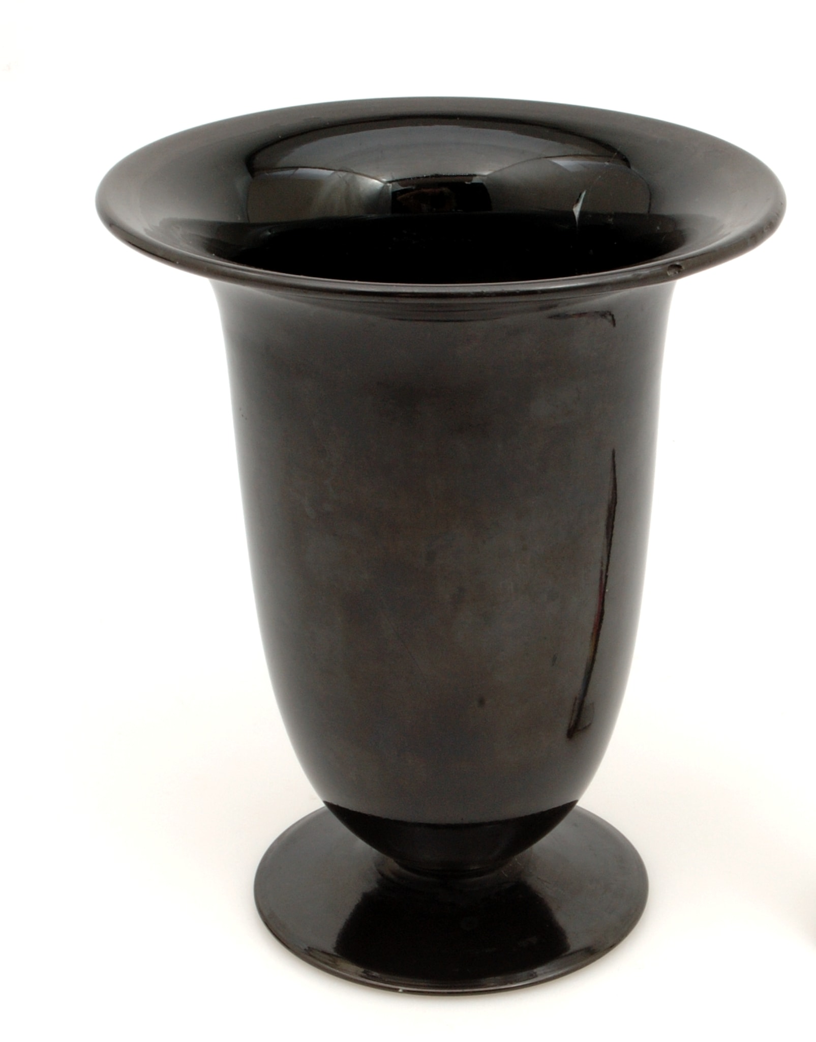 À en juger par les dimensions, le vase présenté ici a été réalisé après 1935. En revanche, le revêtement noir faisait déjà partie du catalogue en usage de 1931 à 1935. Il évoque les fameuses terres lustrées noires du céramiste Paul Ami Bonifas.