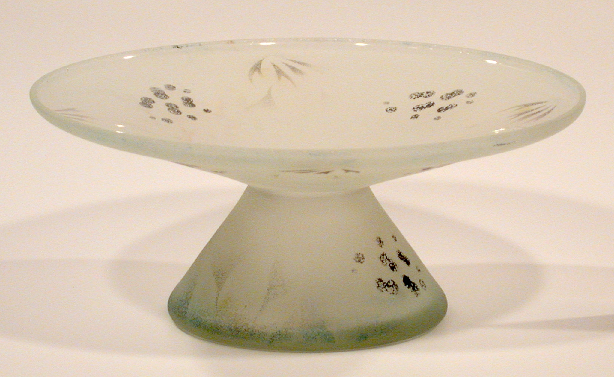 Cette coupe fut créée à une période précoce de la Verrerie artistique (1930–1964). Les sources dont nous disposons sont des catalogues de la Verrerie de St-Prex. Cet objet n'apparaît cependant dans aucun d'eux. En revanche, la technique utilisée, le verre incolore sablé puis peint au pochoir et à l'aérographe, est proposée jusqu'en 1935.