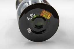 Verre vert soufflé en moule, pied appliqué, lèvre évasée, revêtement émaillé noir posé à l'aérographe; forme: balustre