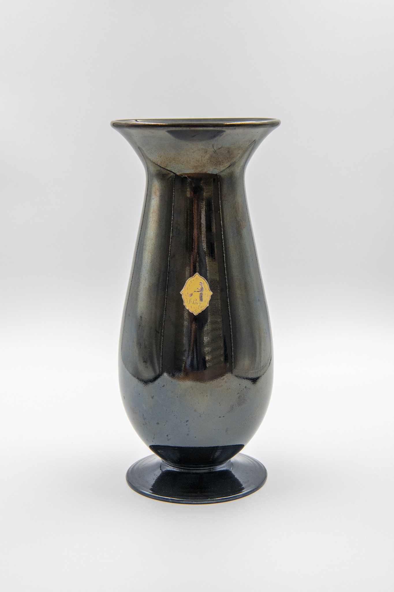 Sans le timbre doré des premières années ou d’autres particularités, rien ne suggère que le vase présenté ici ait été produit avant 1935. En revanche, le revêtement émaillé noir faisait déjà partie du catalogue en usage de 1931 à 1935.