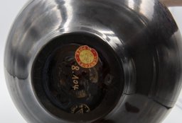 Le vase présenté ici est doublé de verre noir. Avec le timbre doré sur le fond et l'usage de verre brun, lié à la fabrication de flaconnage, sa datation précoce est assurée.