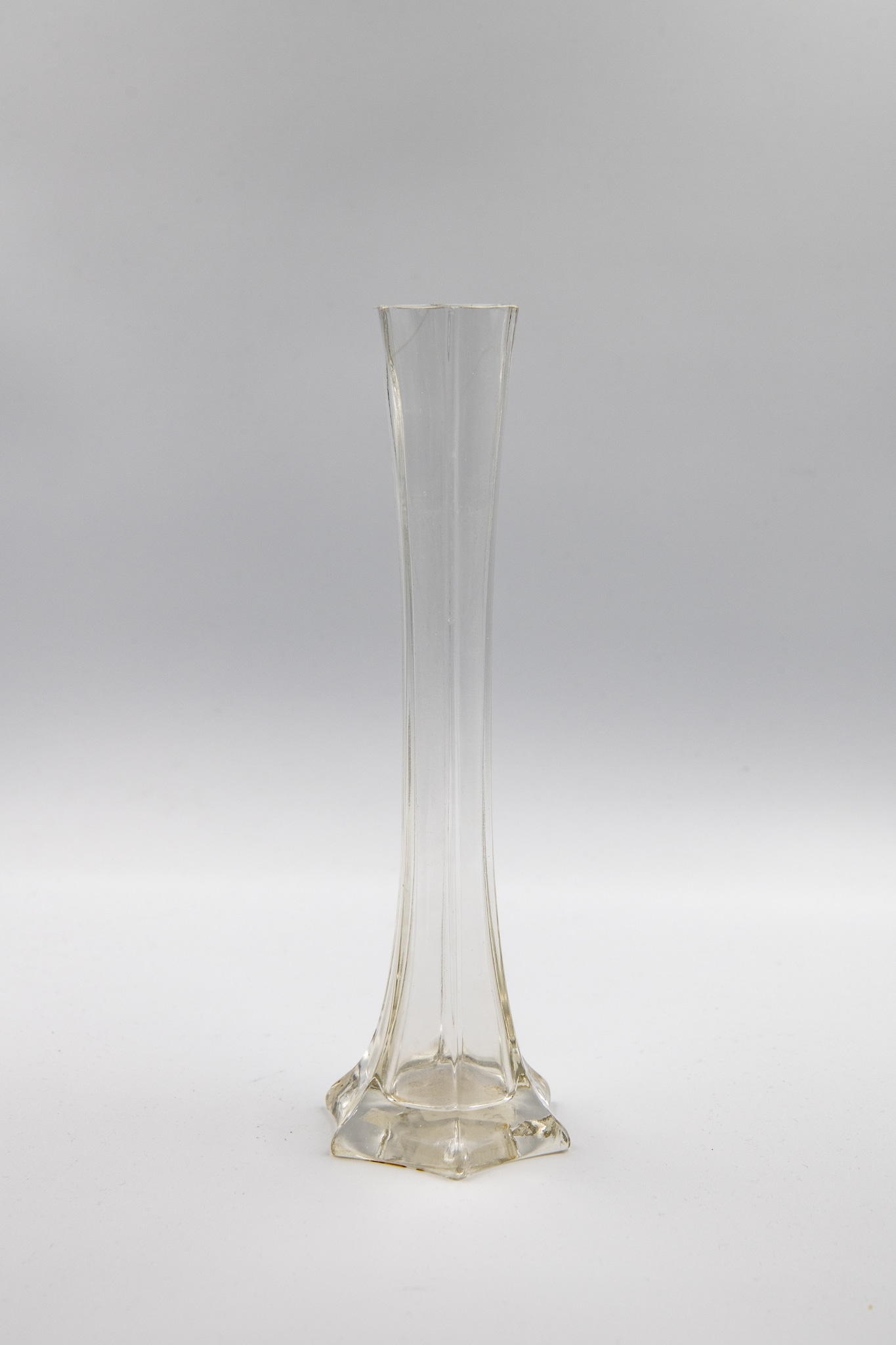Le vase en verre incolore présenté ici n'a pas caractéristiques qui le distingue du modèle.