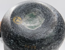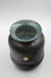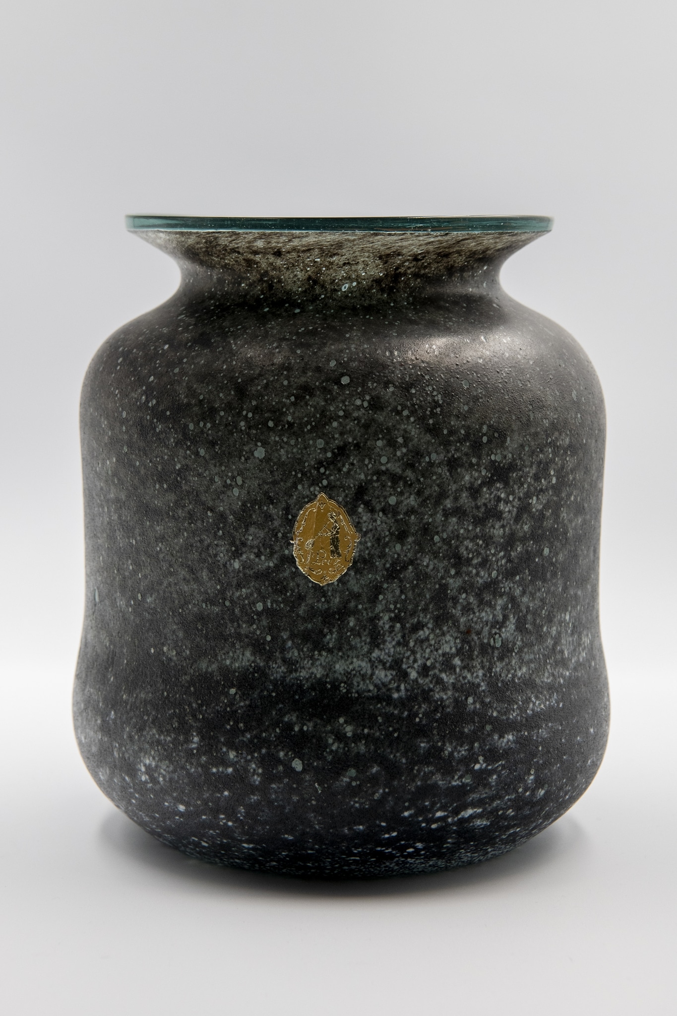 Sous la base, le vase présenté ici présente le timbre doré, gravé à l'acide, typique des 1931-1935. Il pourrait être le fruit d’une collaboration entre Bonifas et le verrier vénitien. La coloration à chaud sans fusion ainsi que la surface irisée semblent étayer cette hypothèse. A posteriori, il a été muni de l'étiquette dorée qui prendra le relais du timbre dès 1935.