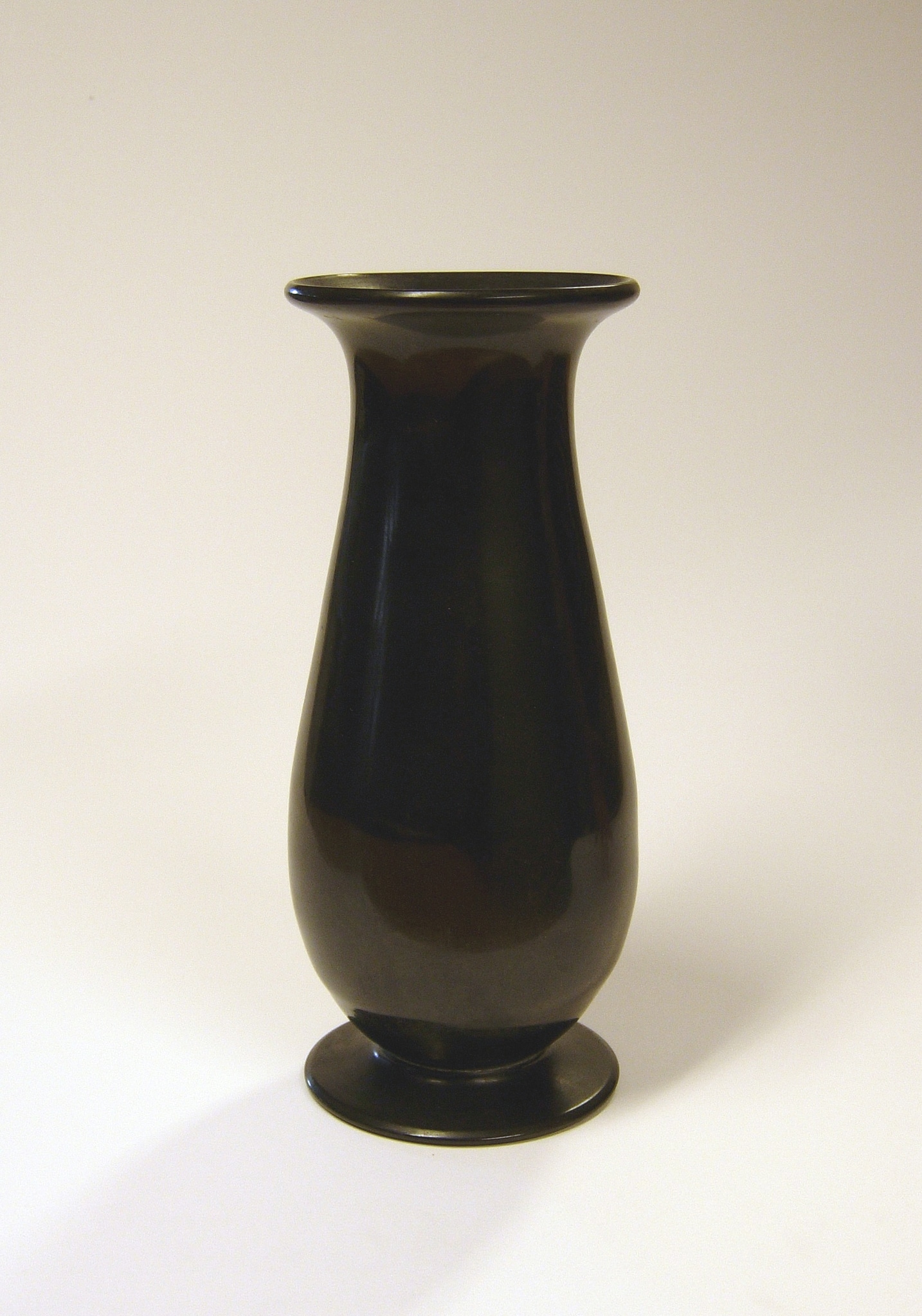 Sans le timbre doré des premières années ou d’autres particularités, rien ne suggère que le vase présenté ici ait été produit avant 1935. En revanche, le revêtement émaillé noir faisait déjà partie du catalogue en usage de 1931 à 1935.
