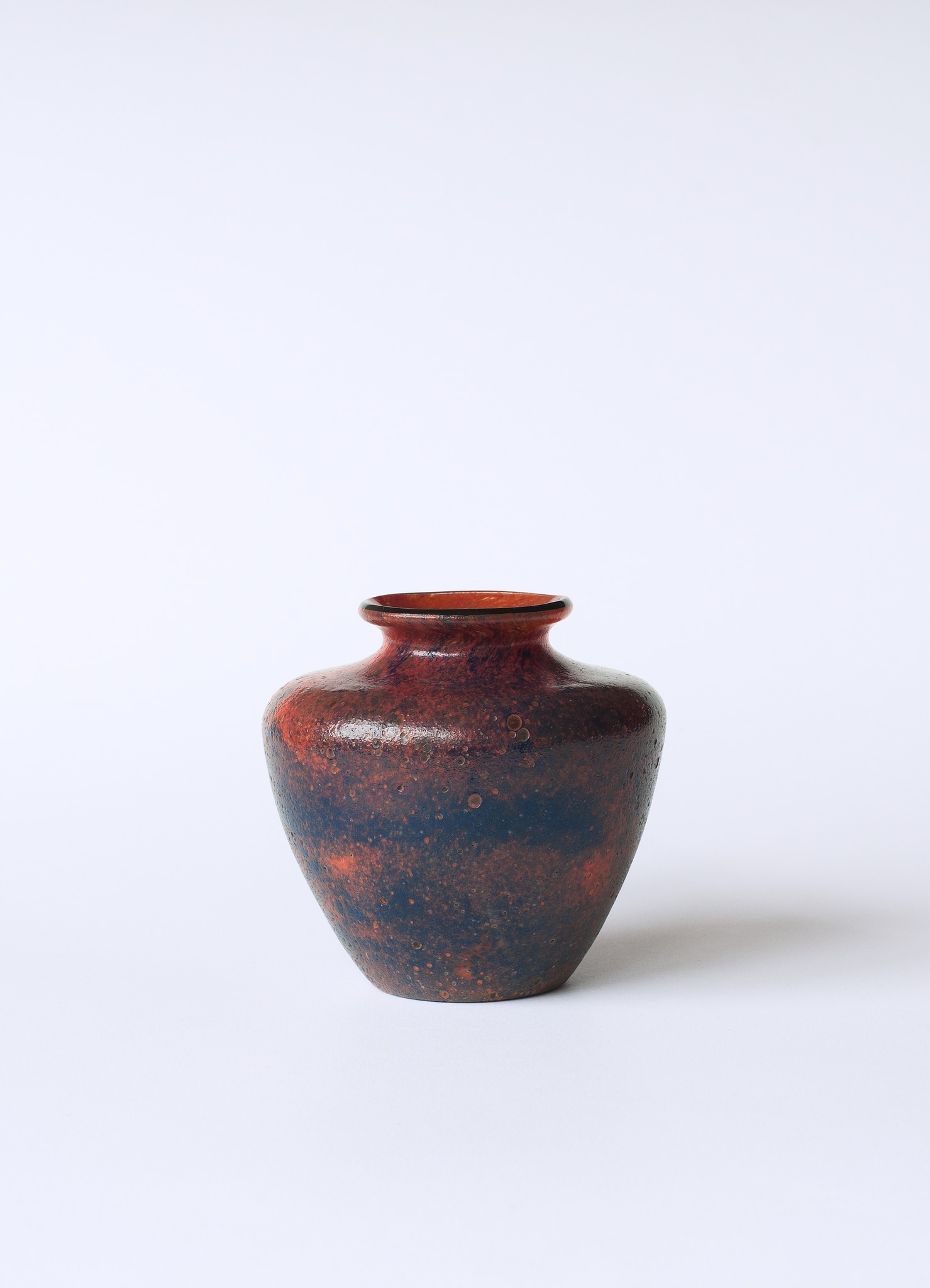 À la recherche de correspondances formelles, notons que ces vases à l’aspect antiquisant sont déjà proposés au Comptoir suisse de 1930, alors que Paul Ami Bonifas ne travaillait pas encore avec la Verrerie de St-Prex (Verreries de St-Prex, 1931, s. p.). Faute de sources, leur concepteur reste inconnu.