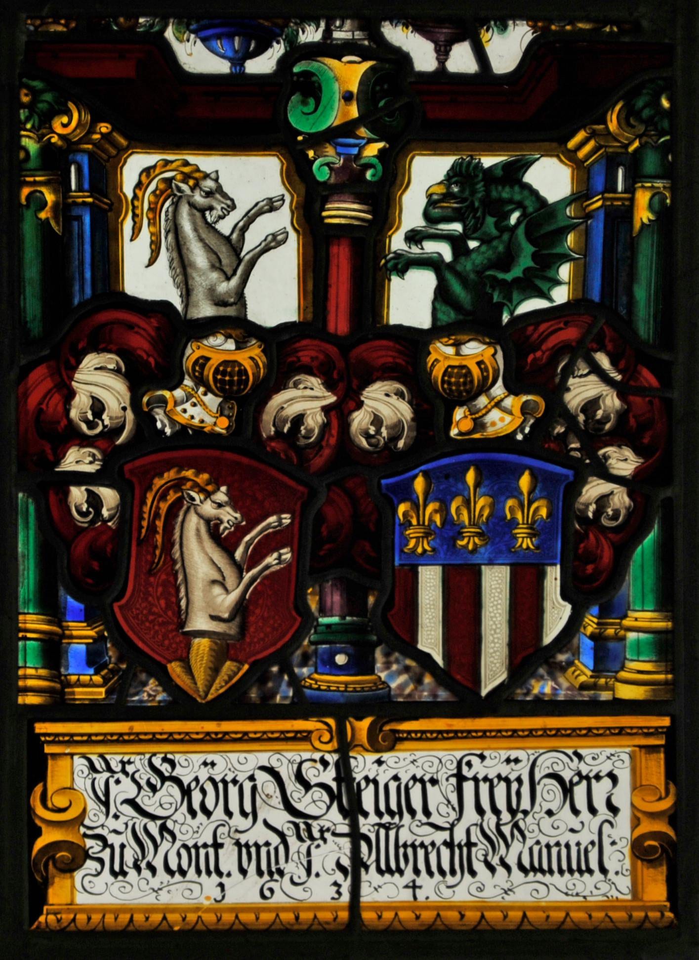 Georg Steiger ist mit Hans Georg Steiger (1602–1638), dem Sohn Georgs (1575–1610) identisch. Er war Freiherr von Mont le Grand, Herr zu Allaman und Offizier in holländischen Diensten. 1635 wurde er Mitglied des Berner Grossrats. Er heiratete in Bern 1623 Esther Morlot, die Tochter des Marx und der Dorothea von Luternau (HBLS 6/1931, S. 522; Kessel 2015).