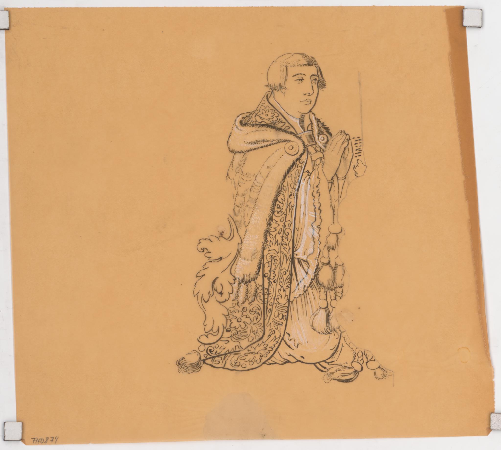 Der massive Eingriff des Restaurators wird durch die Korrespondenz deutlich. Die heute wieder voll bemalten Gesichter der Glasmalereien, so auch der vorliegenden Stifterfigur, gehen also auf Drenckhahn zurück.
