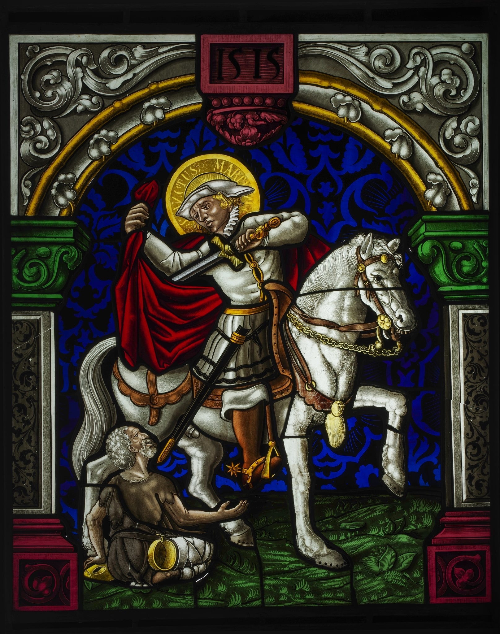 Ce vitrail figurant l’épisode du partage du manteau par saint Martin date de la seconde moitié du XIXe siècle, contrairement à ce qu’indique la date figurant dans un cartouche. En 1938, Deonna pensait déjà que ce vitrail était moderne (Deonna, 1938, p. 175). Son auteur n’a pas pu être identifié.