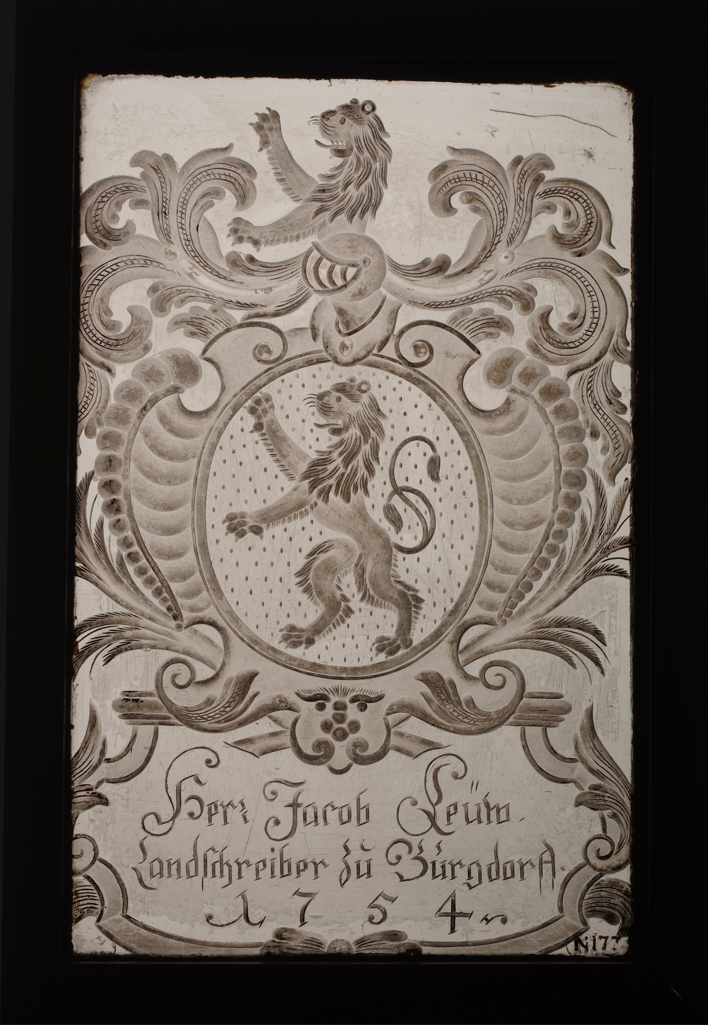 Herr Jacob Leüw. / Landschreiber zŭ Búrgdorff. / 1754 (en bas)