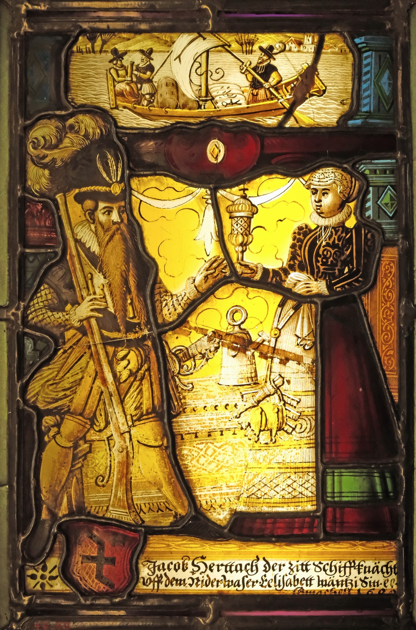 Jacob Herttach der zitt Schiffknächt / uff dem Niderwasser Eelisabett Mäntzi Sin ee / Gmachell 1600 (Jacob Hertach, the current shipping agent for Niederwasser and Elisabeth Menzi, his wife, 1600