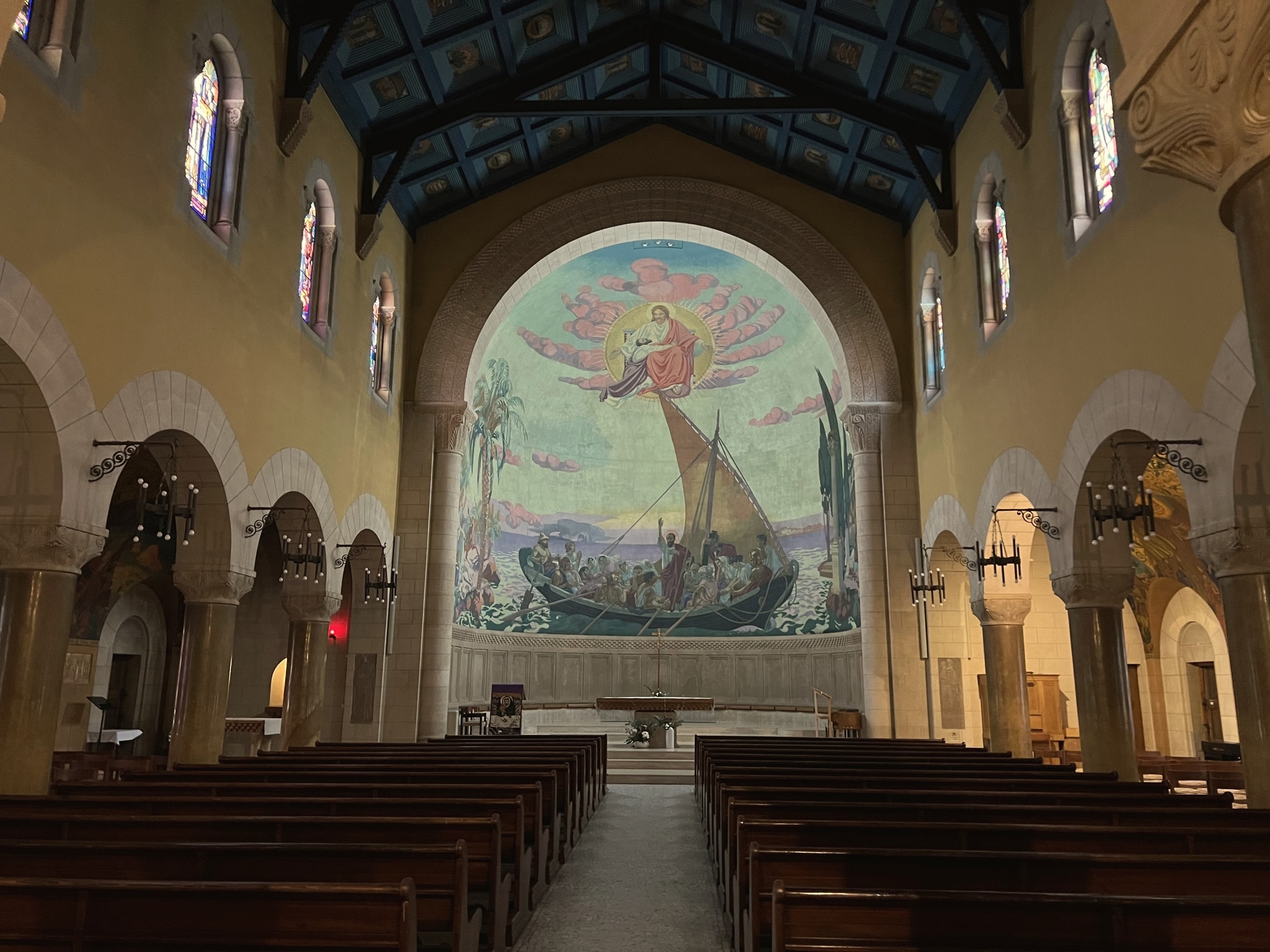 Pour la décoration intérieure, l'abbé Jacquet, grand amateur d'art, s'assure le concours de différents artistes afin de réaliser une "oeuvre de beauté" qui marquera une étape dans l'histoire de l'art religieux au XXème siècle (Comte, 1920, p. 60). Il prend contact, par l'intermédiaire de l'écrivain Georges Goyau, avec le Français Maurice Denis, déjà une figure d’autorité en tant qu’artiste et théoricien de l’art et dont la réputation n'est plus à faire (Hodel, 1994, p. 1-4). Il lui confie la réalisation d'un morceau de choix, la grande peinture de l'abside, réalisée sur une toile marouflée peinte dans son atelier de Saint-Germain-en-Laye. Inaugurée en novembre 1916, elle représente des scènes de la vie de Paul, sa conversion, son prêche dans une barque et son martyre (Comte, 1920, p. 72-80). De nombreux autres artistes de Genève se retrouvent sur le chantier, pour la plupart assez jeunes, à l'instar du sculpteur Casimir Reymond ou de Marcel Poncet, artiste qui sort à peine des études lorsqu'il est appelé sur le chantier. Rapidement repéré par Maurice Denis pour ses compétences dans le domaine du vitrail, ce dernier possède l'avantage d'être à la fois artiste, peintre-verrier et maître-verrier, puisqu'il a effectué une double formation à l'école des Beaux-Arts, parallèlement à un apprentissage au sein d'un atelier de verrier à Carouge (Reymond, 1992, p. 36-37). Il se voit ainsi confier la réalisation dans son atelier, en plus de ses propres vitraux du bas-côté sud, de plusieurs verrières en collaboration avec d'autres artistes présents sur le chantier : Maurice Denis, Alexandre Cingria et Charles-Emile Brunner, artistes qui sont également impliqués parallèlement dans la réalisation des vitraux de Notre-Dame de Genève (Noverraz, 2014, p. 21-27). Dès 1918, Maurice Denis complète le cycle des vitraux des bas-côtés par celui des fenêtres hautes, représentant des saints et saintes emblématiques du catholicisme genevois, savoyard et lyonnais, entre autres, en collaboration avec Charles Wasem ("Les nouvelles oeuvres de Maurice Denis à l'église Saint-Paul", 1923, p. 1-6). En 1924, Poncet orne la tribune de trois nouveaux vitraux. On peut également mentionner les peintures murales de Georges de Traz décorant les bas-côtés, la mosaïque de Denis représentant le baptême du Christ, exécutée par Charles Wasem, les bas-reliefs et sculptures de Casimir Reymond et François Bocquet, ainsi que les reliefs du plafond, conçus sur des cartons de Poncet (Poiatti, 2001, p. 11-12 ; 33-34).