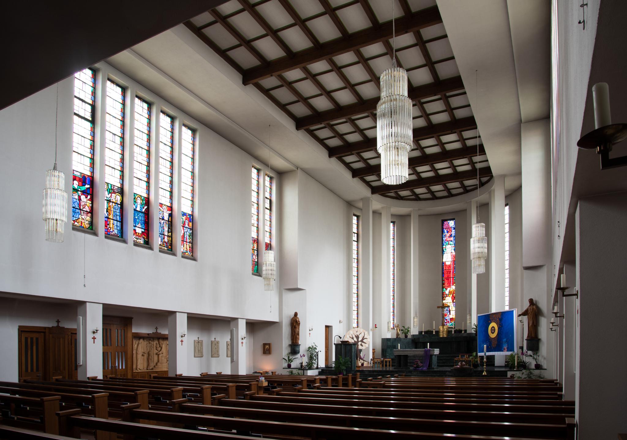 1938 von Adolf Gaudy erbaut. Glasfenster von Albin Schweri, Bern.