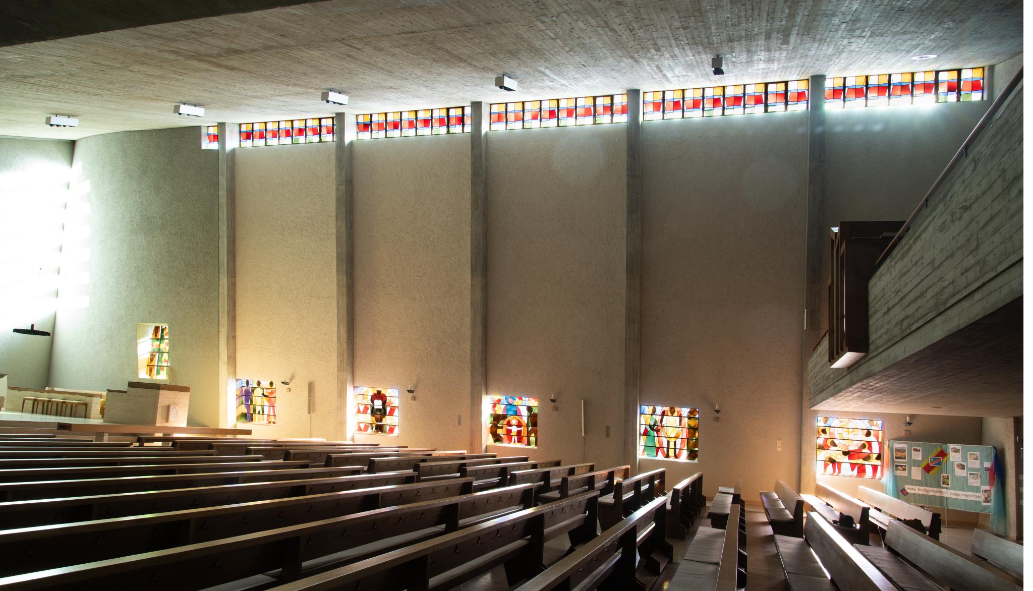 1959–61 von Ernest Brantschen und Alfons Weisser erbauter Betonbau, vermutlich von Corbusiers 1959–61 erbauten Kirche in Ronchamp inspiriert. Schiefe Betonflächen bestimmen das Innere. Restauriert 2001. Glasgemälde von 1961 von Ferdinand Gehr.