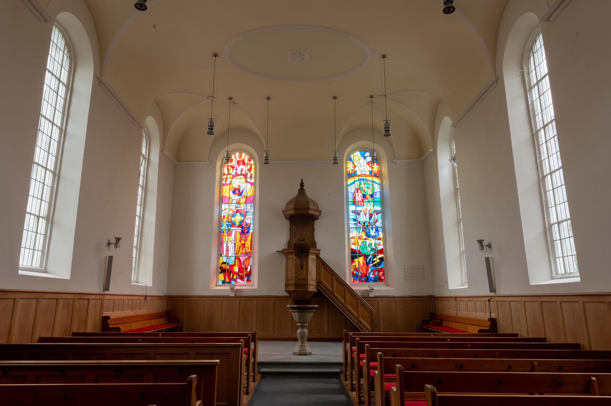 1812 errichtet durch Johann Uhler. Dachturm von der Kirche Kreuzlingen-Egelshofen übertragen. Renoviert 1952 und 1980. Farbfenster von Werner Eberli 1970.
