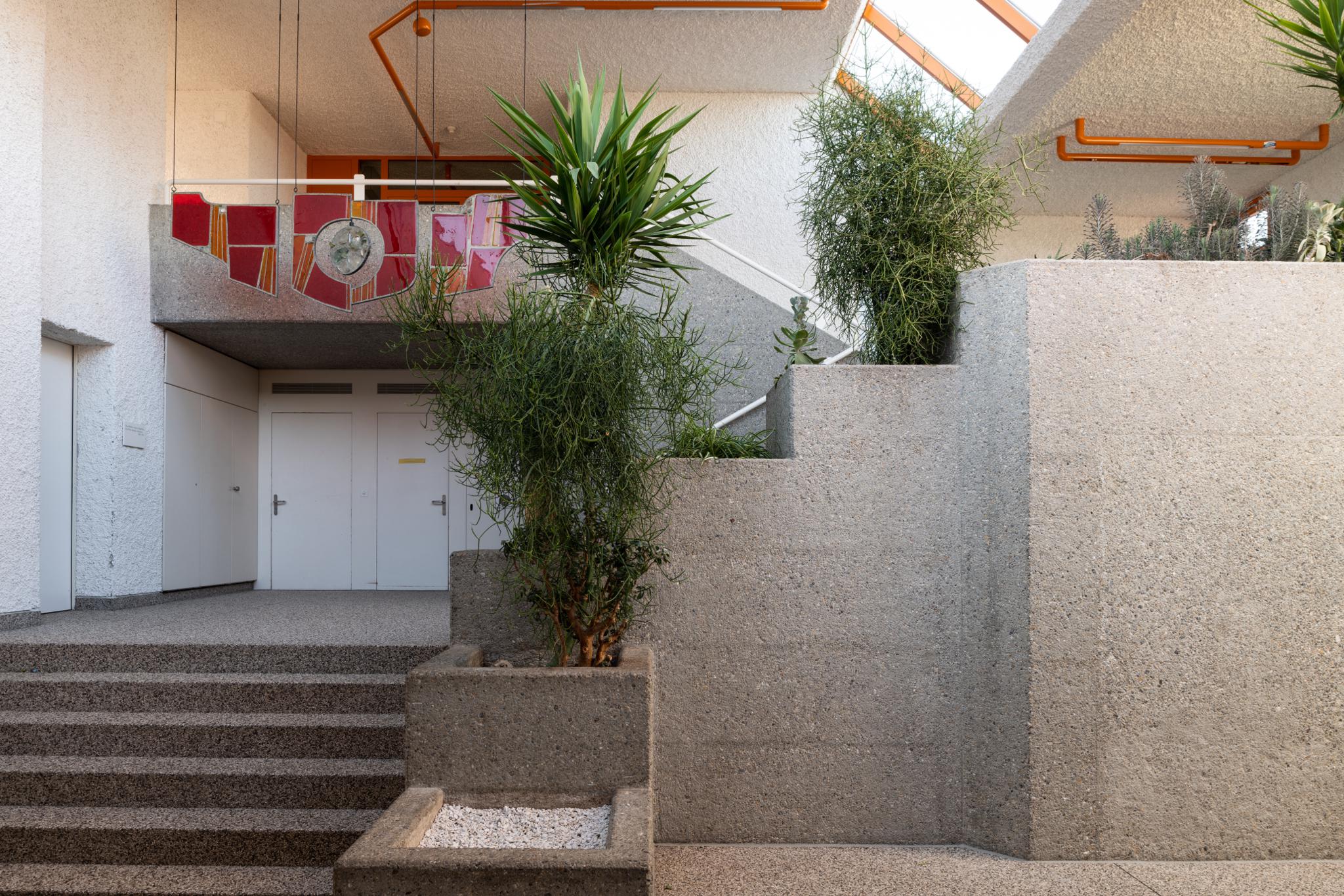 Das neue Schulhaus in Engelburg-Unterdorf SG im Gaiserwald wurde von 1958 bis 1959 nach den Plänen des St. Galler Architekturbüros Heeb & Wicki errichtet. Es löste damit das alte Schulhaus im Oberdorf ab, das seit 1991 als katholisches Pfarramt genutzt wird. 1970 wurden vier weitere Schulzimmer angebaut. Eine umfassende Erweiterung der Schule zu einer L-förmigen Anlage mit Mehrzweckgebäude erfolgte 1982/1983. Eine bauzeitliche, freihängende Betonverglasung von Heinrich Stäubli, der sein Atelier in Engelburg unweit der Schule hatte, schmückt das offene Treppenhaus zwischen Schule und Anbau (HS_1039). Anlässlich der Einweihung der Mehrzweckhalle mit Foyer, Küche und Bühne am 29. Mai 1983 war auch Stäubli anwesend war (Schulgemeinde Engelburg, 2008, S. 14). 1999 wurde die freistehende Doppelturnhalle in Betrieb genommen.