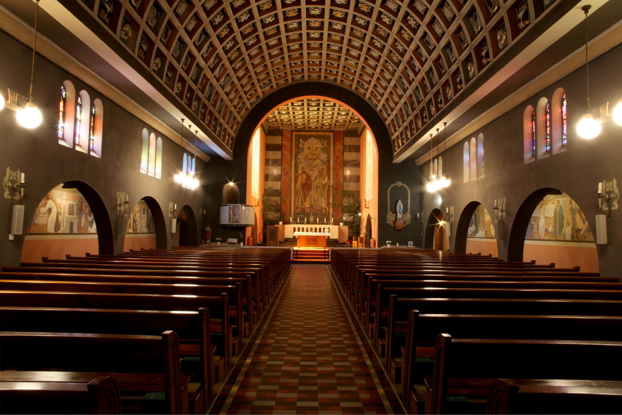 L’église Saints-Pierre-et-Paul est un manifeste du renouveau de l’art sacré dans l’entre-deux-guerres et l’une des plus belles réalisations du Groupe de Saint-Luc (Andrey, 2012, p. 210). En plus du bâtiment, l'architecte imagine aussi dans les moindres détails l’aménagement intérieur et le mobilier : retable du chœur, autels, chaire, siège du célébrant, table de communion, orgues, fonts baptismaux, bénitier, détails des portes et éléments de serrurerie. Il dessine également la voûte en berceau de la nef, composée de 433 caissons, à l’intérieur desquels sont disposés, selon un plan précis, différents symboles de l’Ancien et du Nouveau Testament (Torche-Julmy, Maggetti, James, 2003, p. 57).