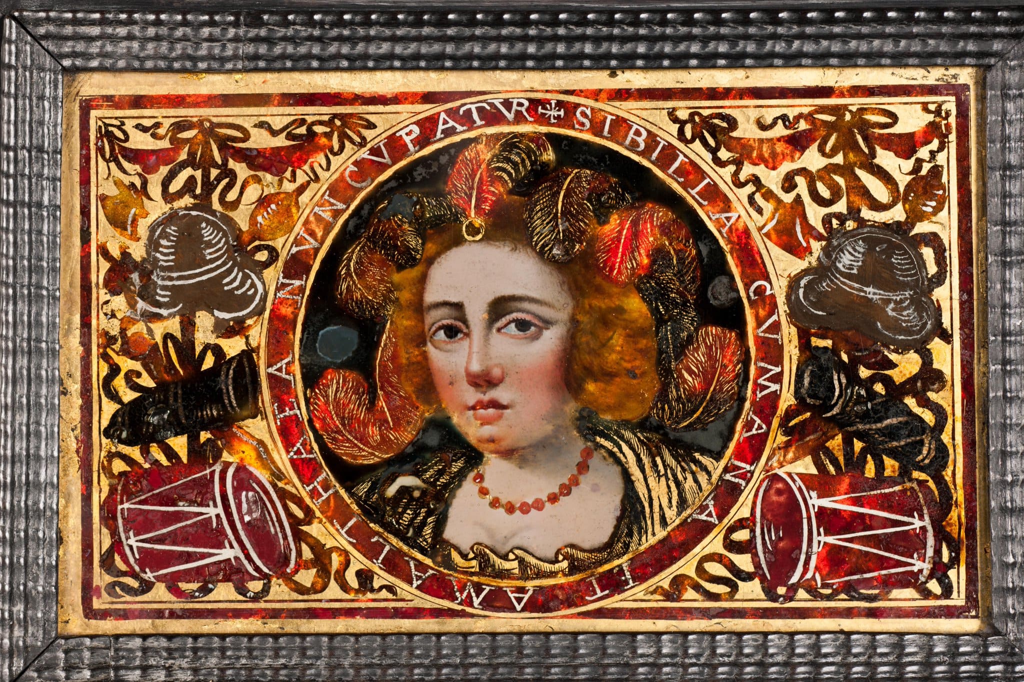 Hinterglaseinlage: Bildnis der Sybilla Cumana in Medaillon