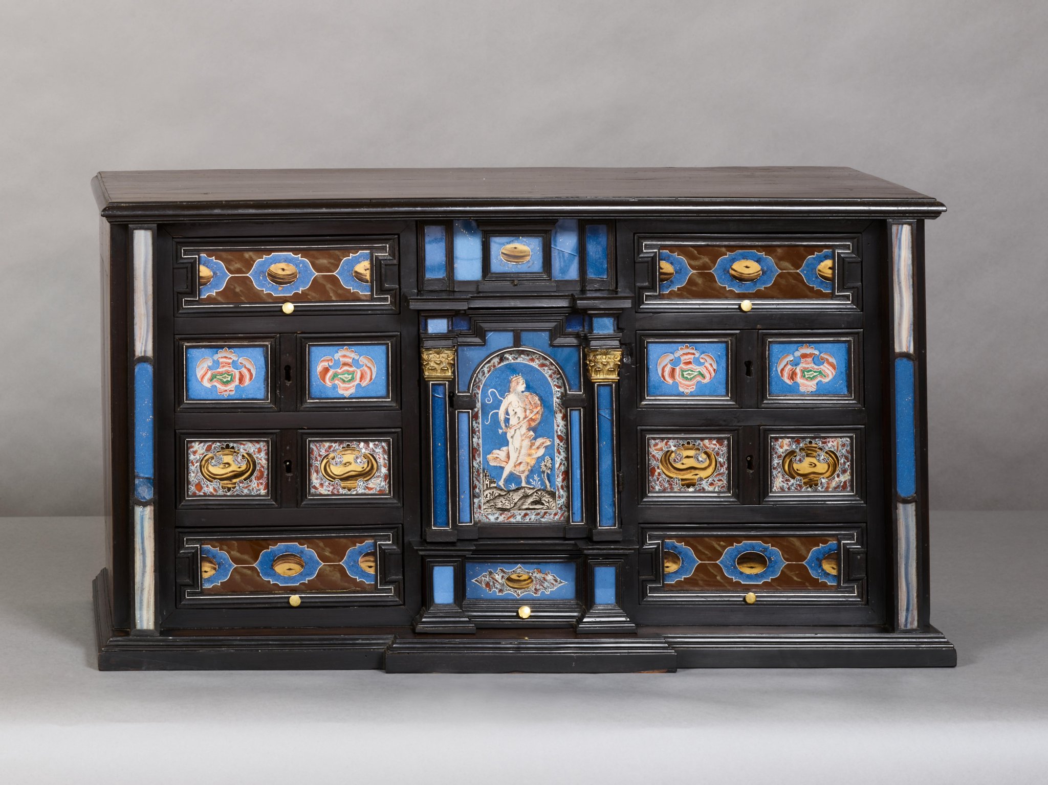 Kabinettschrank mit hintermalten Glaseinlagen in Pietra dura-Imitation