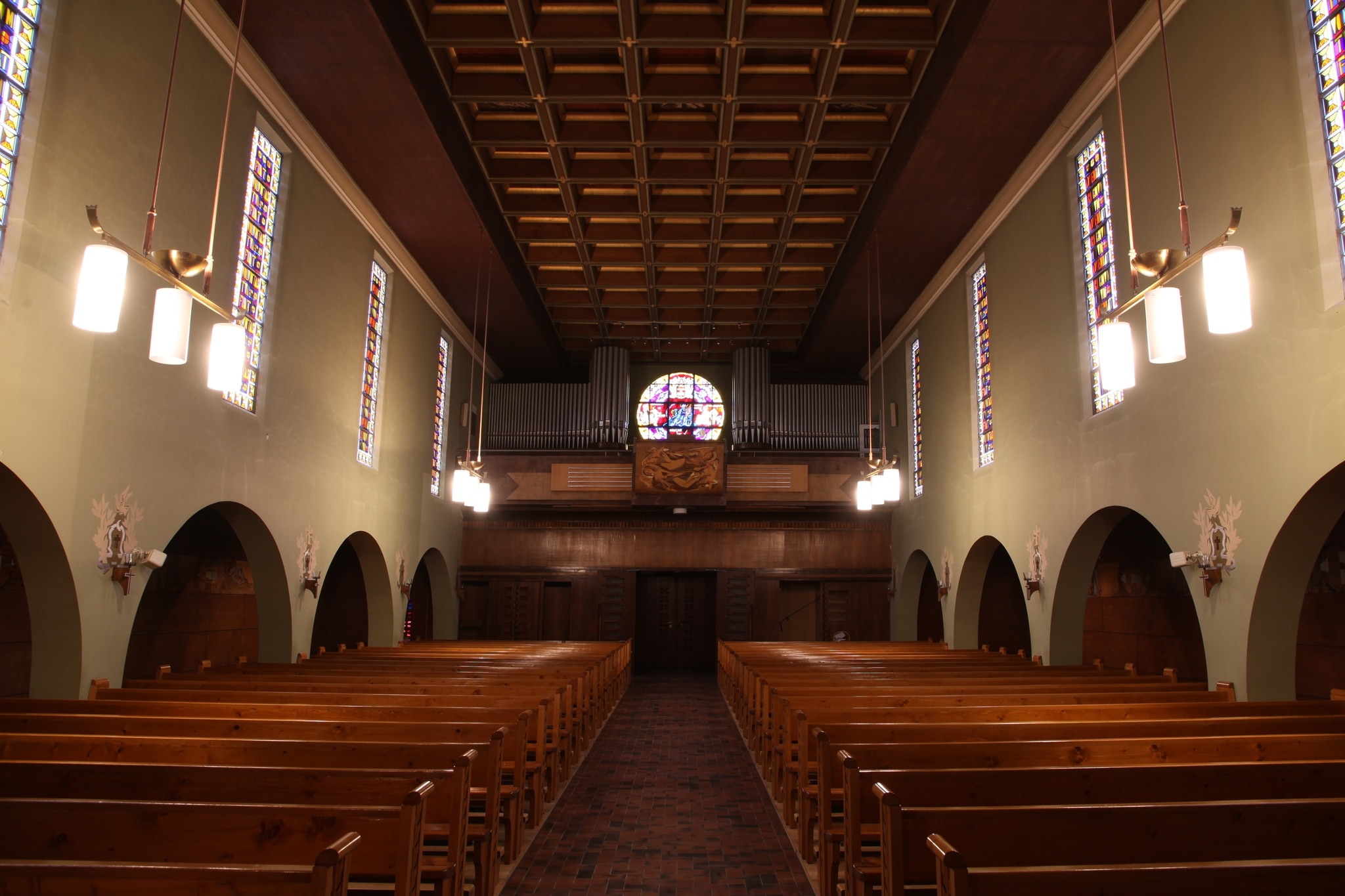 : Vue intérieure de l'église Saint-Michel de Sorens (vers la tribune des orgues)