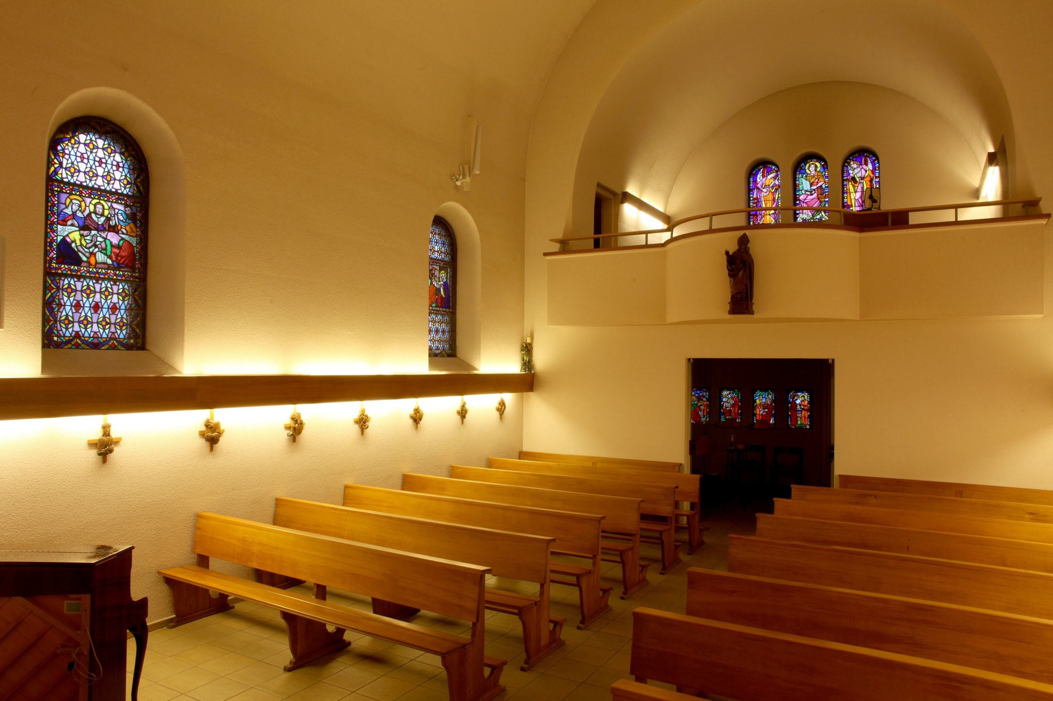 Vue intérieure de la chapelle de Saint-Aubin-Sauges (vers la tribune des orgues)