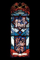 Ce vitrail en plein cintre a été réalisé en 1926 par l’artiste genevois Alexandre Cingria et par l’atelier lausannois Chiara pour une des quatre fenêtres du vestibule situées de chaque côté de l’entrée de l’église Saint-Paul de Cologny (GE), dans le quartier de Grange-Canal.