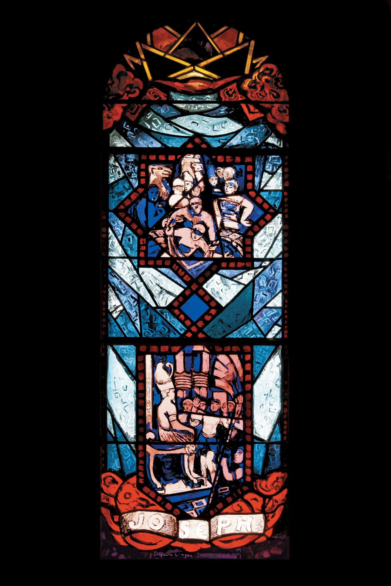 Musée d’art et d’histoire de Genève. (s.d.-b). Joseph, tiré hors de la citerne, est vendu par ses frères comme esclave à des marchands qui l'emmènent en Egypte (Gn 37, 25-28) : carton de vitrail 1:1 pour le narthex de l'église Saint-Paul à Grange-Canal. Collection en ligne. https://collections.geneve.ch/mah/oeuvre/joseph-tire-hors-de-la-citerne-est-vendu-par-ses-freres-comme-esclave-des-marchands-qui