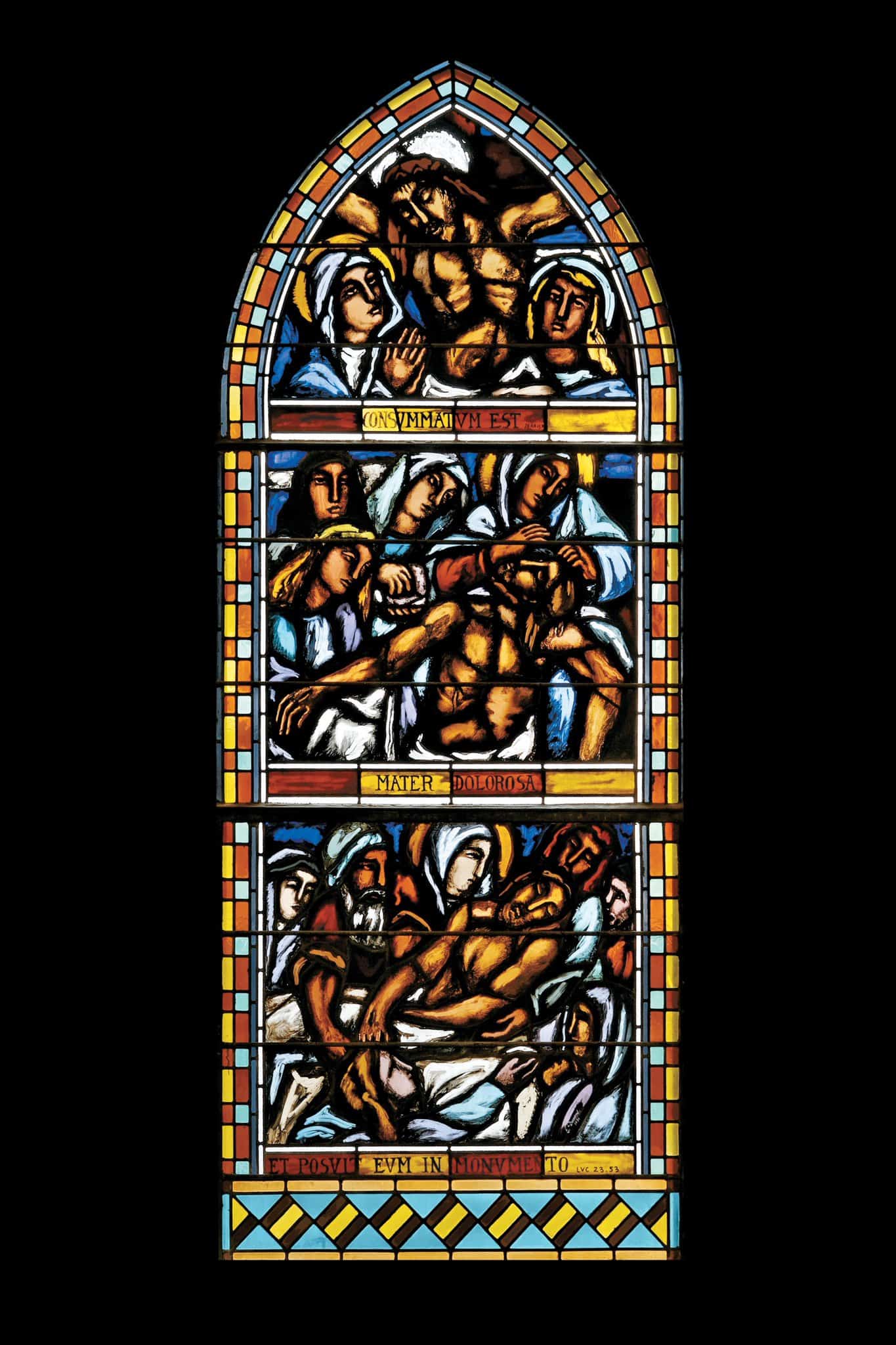 ConsVmmatVm est Jean.19.3 / Mater Dolorosa / Et posVit eVm in monVmento LVc.23.53 (bandeau sous chaque scène)