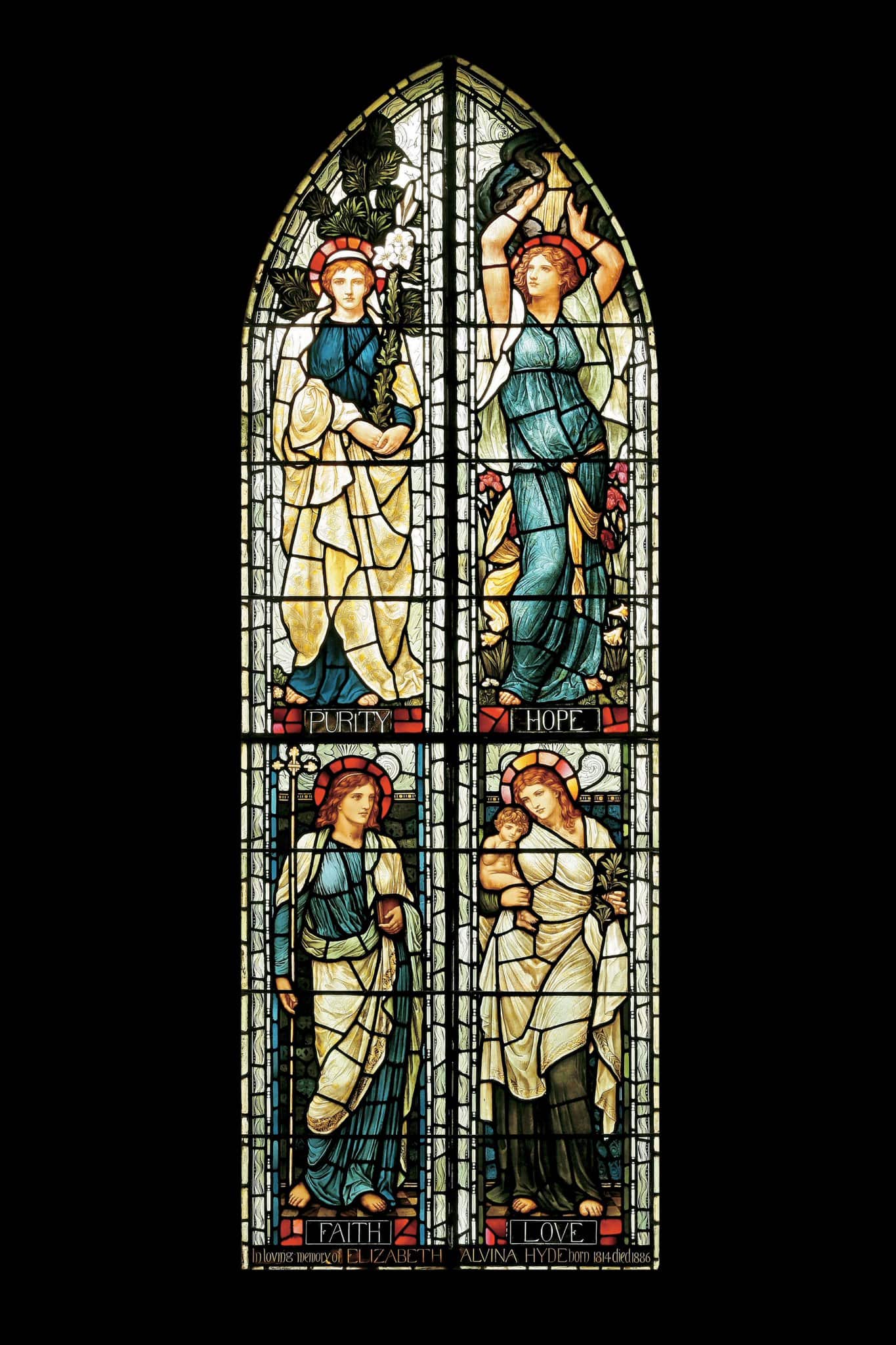 PURITY / HOPE / FAITH / LOVE (sous chaque vertu) / IN Loving memory of ELIZABETH ALVINA HYDE born 1814 died 1886 (bandeau en bas)