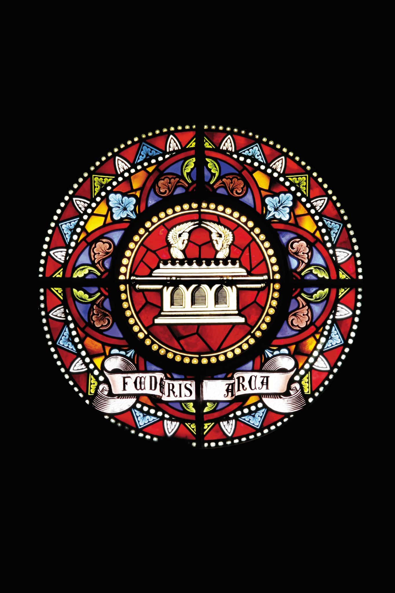 Une rose aux motifs végétaux avec au centre l’arche d’alliance