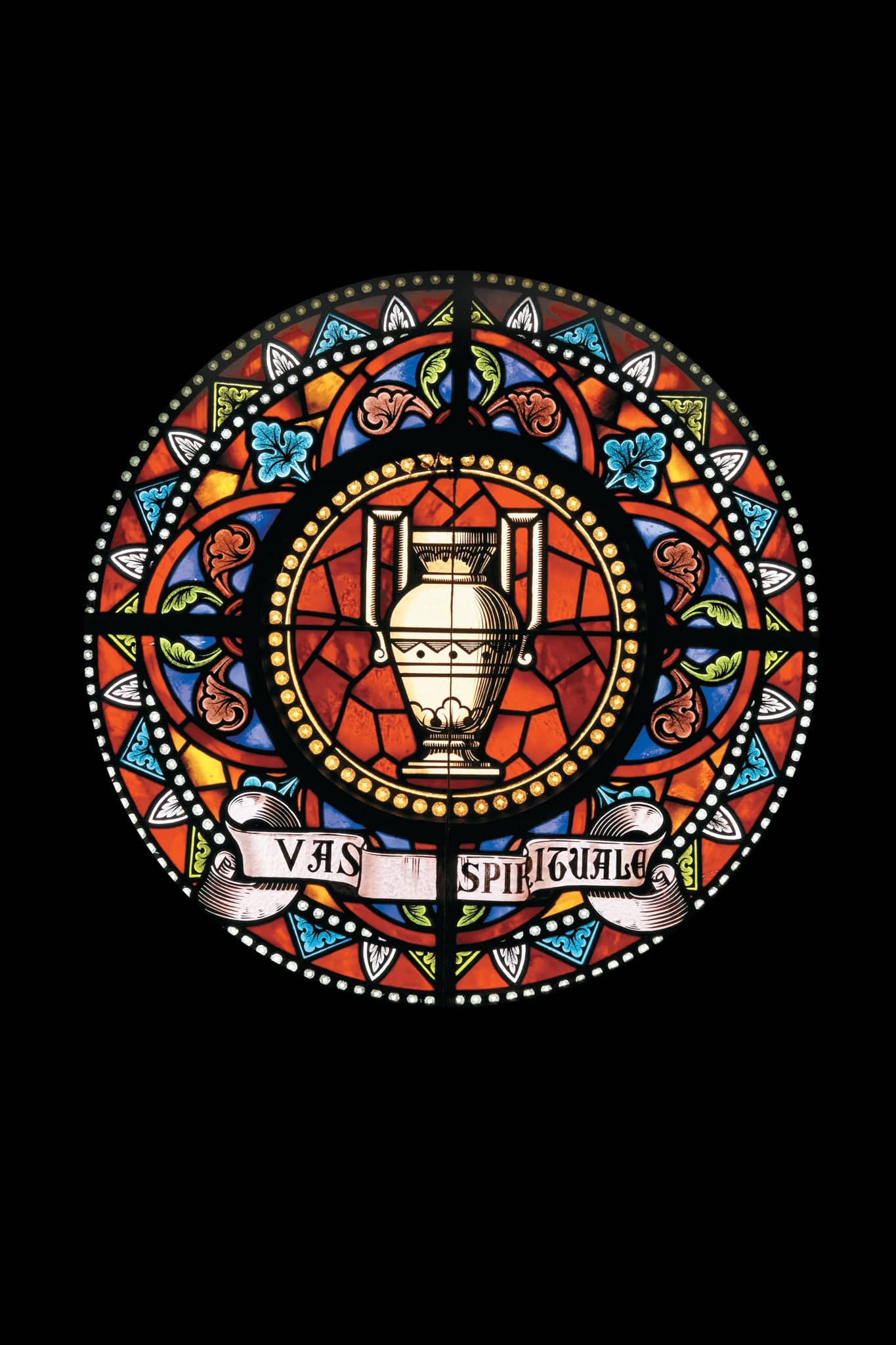 Une rose aux motifs végétaux avec au centre un vase spirituel