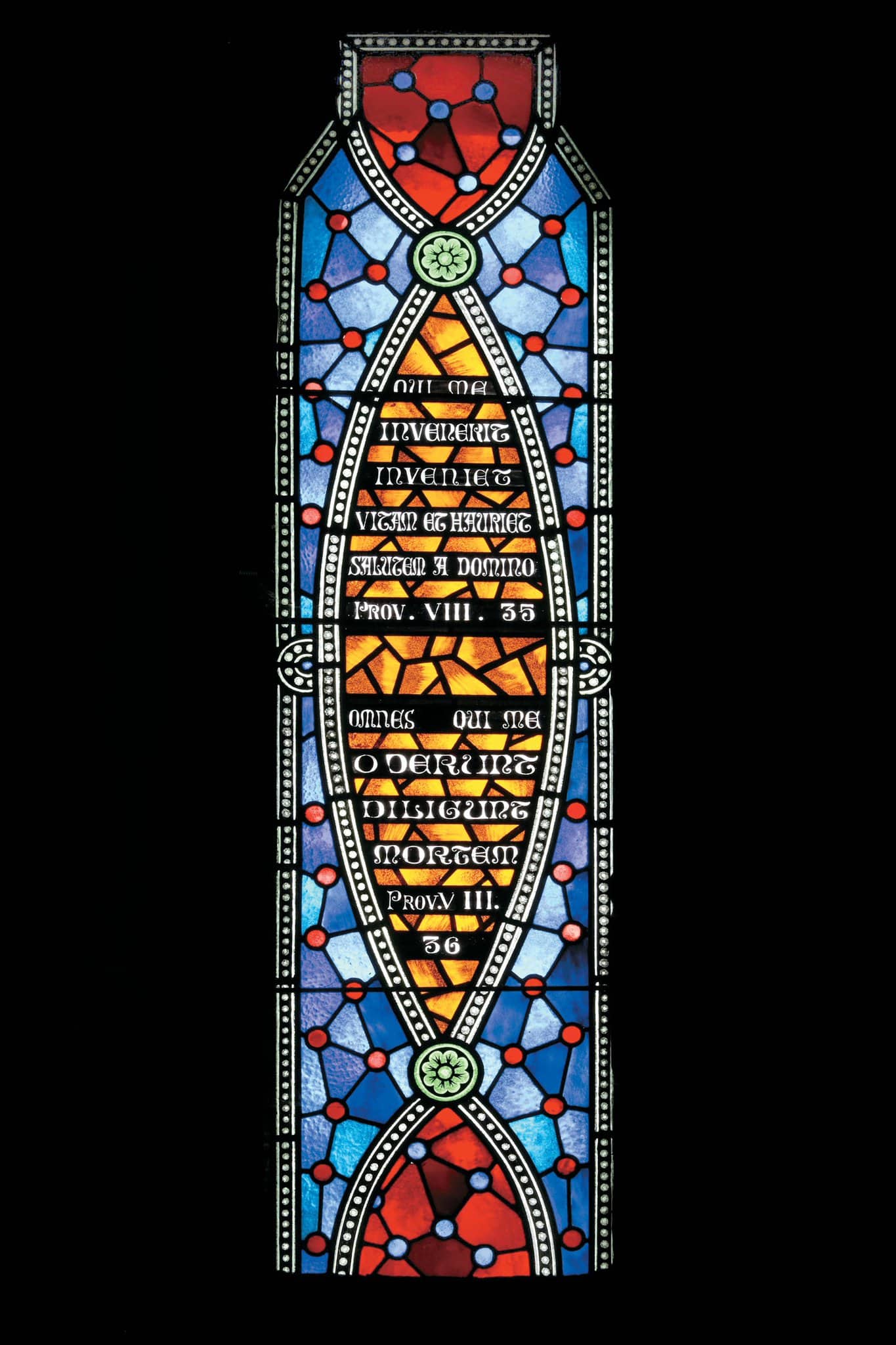QUI ME / INVENERIT / INVENIET / VITAM ET HAURIET / SALUTEM A DOMINO / PROV. VIII.35 / OMNES QUI ME / ODERUNT / DILIGUNT / MORTEM / PROV. VIII 37 (dans la mandorle)