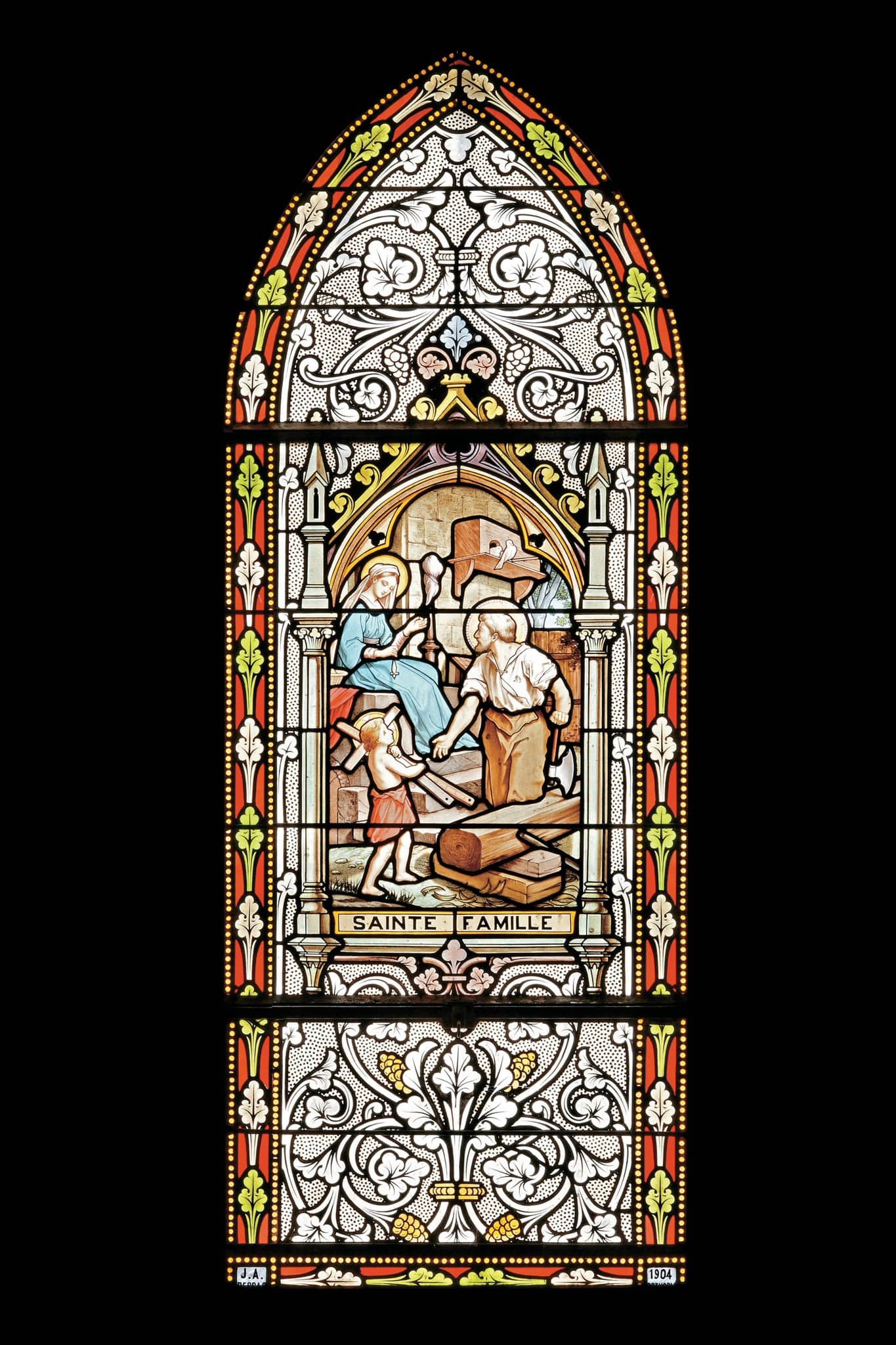 73B721 · Joseph et l'enfant Jésus (ainsi que Marie) dans l'atelier de menuiserie