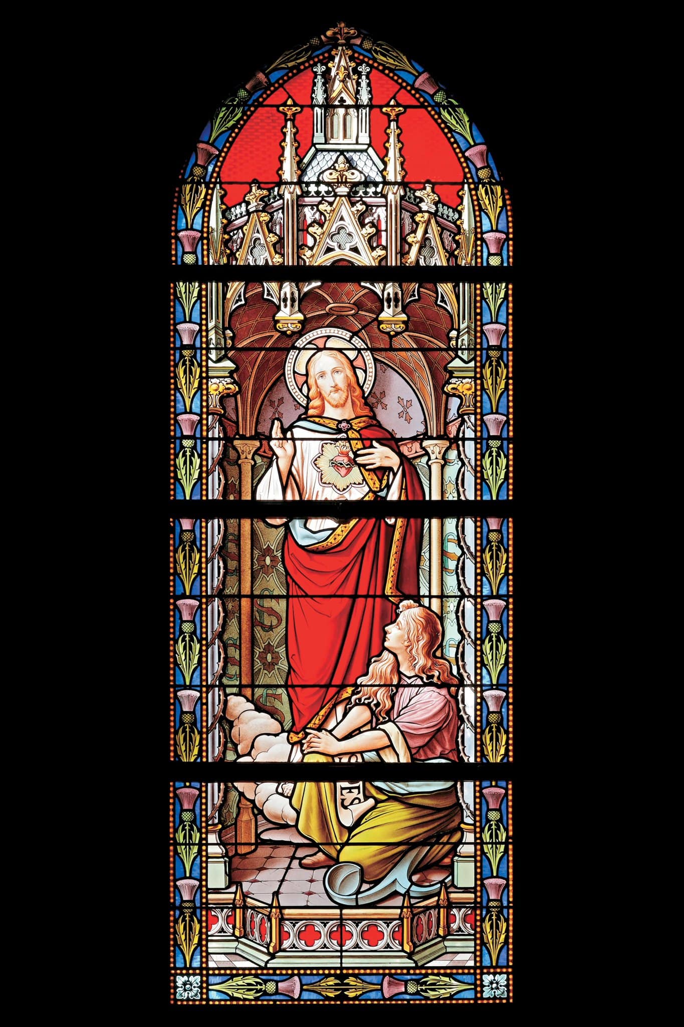 Le Christ, sur des nuées, apparaît à une femme assise sur une ancre. Il montre son coeur rayonnant entouré d’une couronne d’épines.